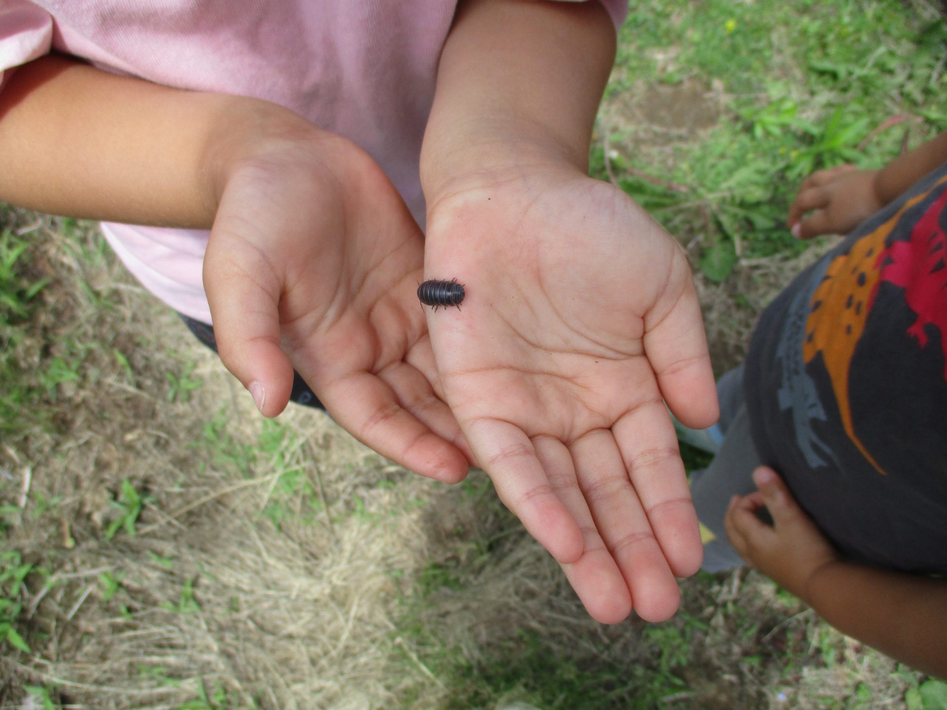 見つけた動植物をいろいろな友達に見せたり教えたりして楽しい散歩になりました!