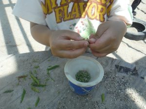 カラスノエンドウがまだ薄いところから膨らんで、黒く変化するところを実際に目にしたことで、カラスノエンドウを身近に感じたのではないかと思いました。