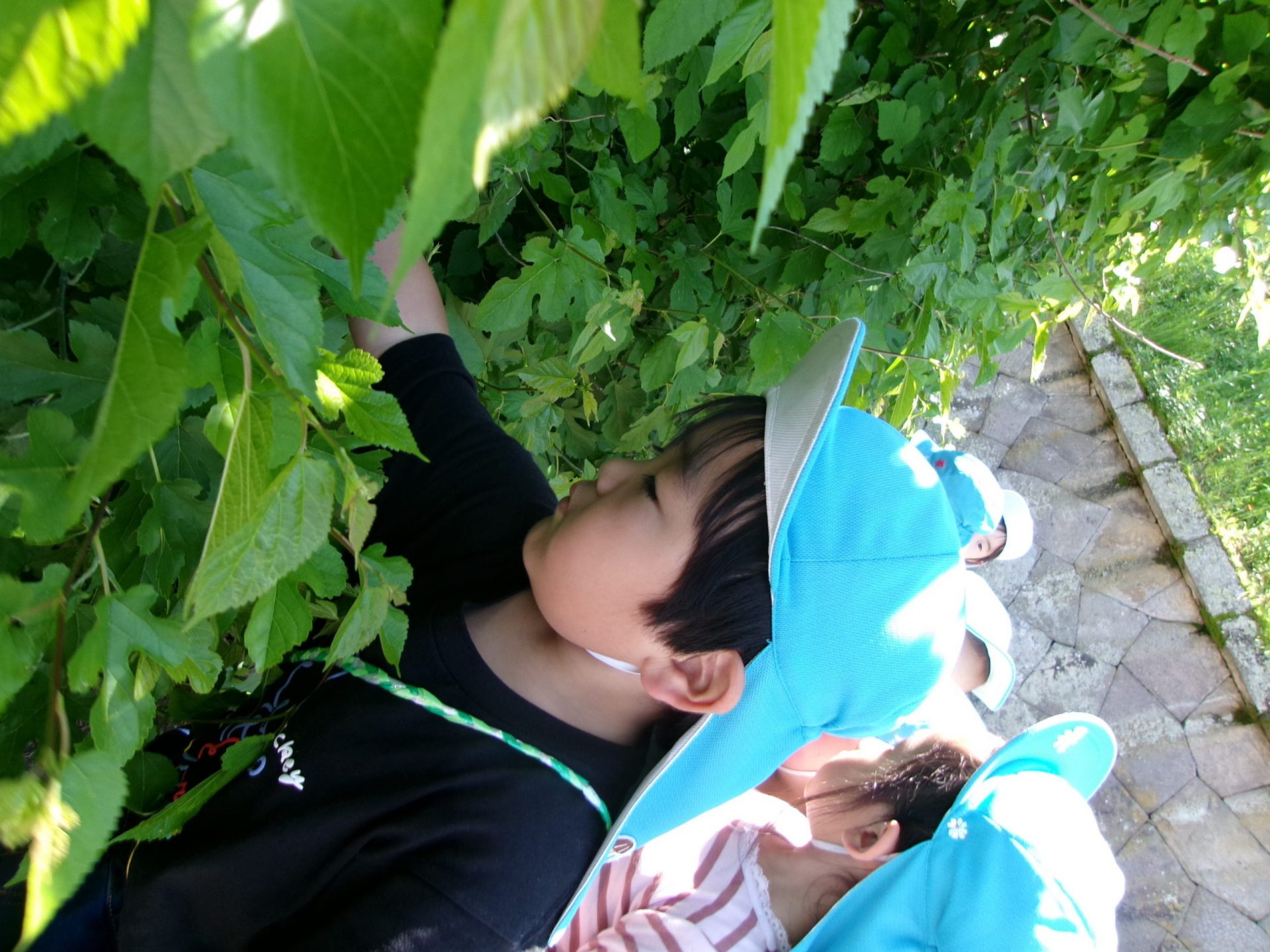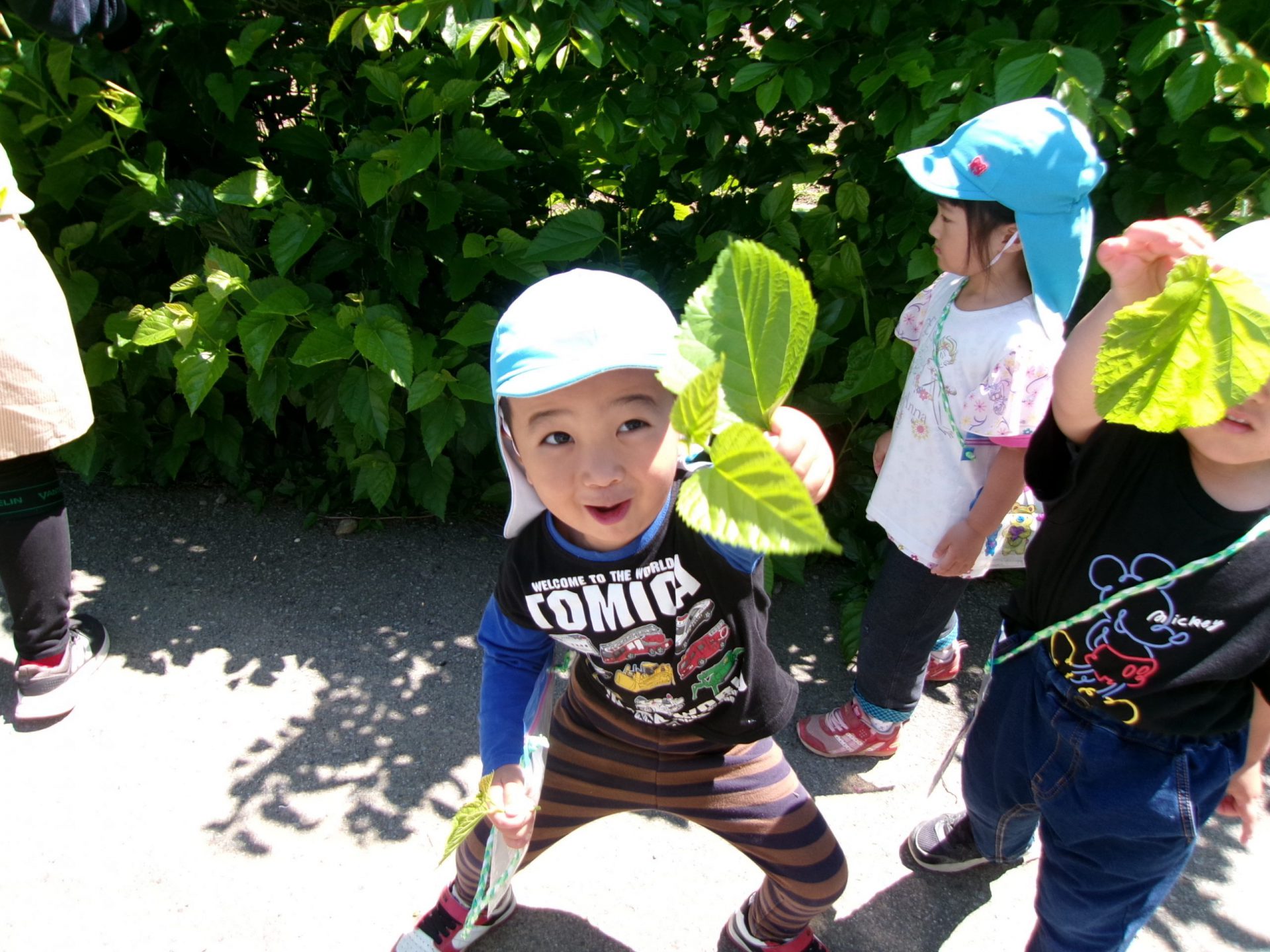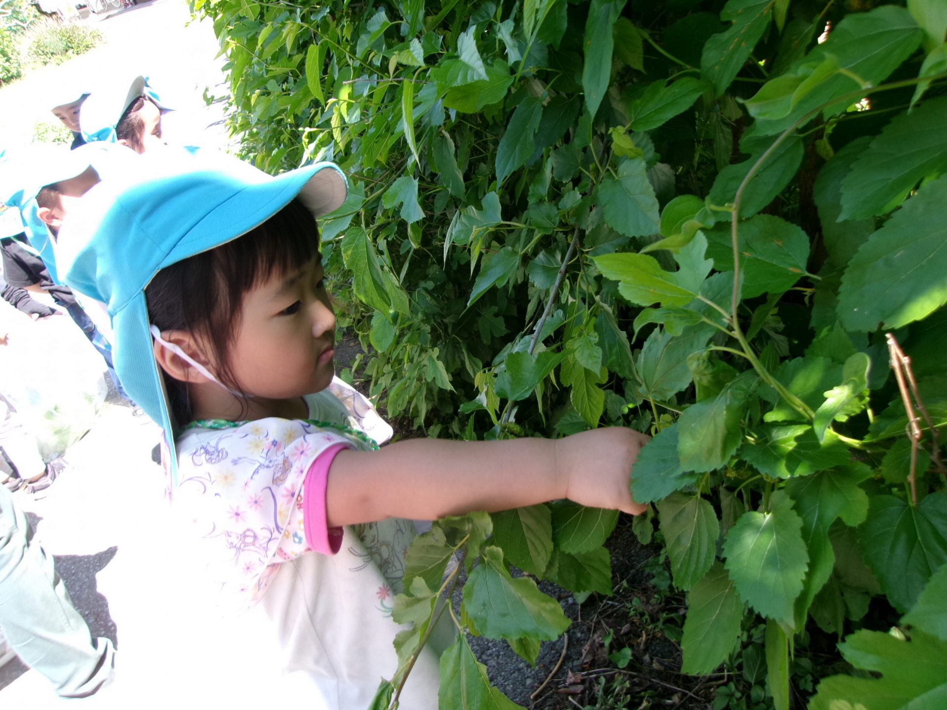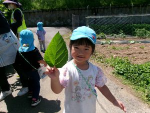 さっそく栄養源の桑の葉をとりに出かけました。