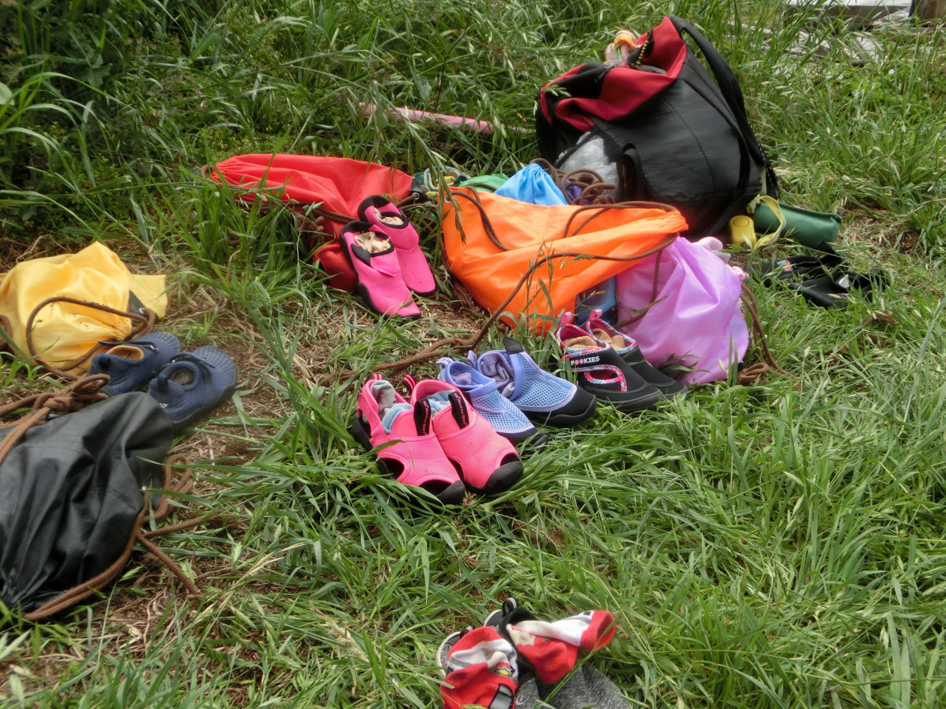 裸足で体験します。水筒が入っているリュックも下ろして・・・