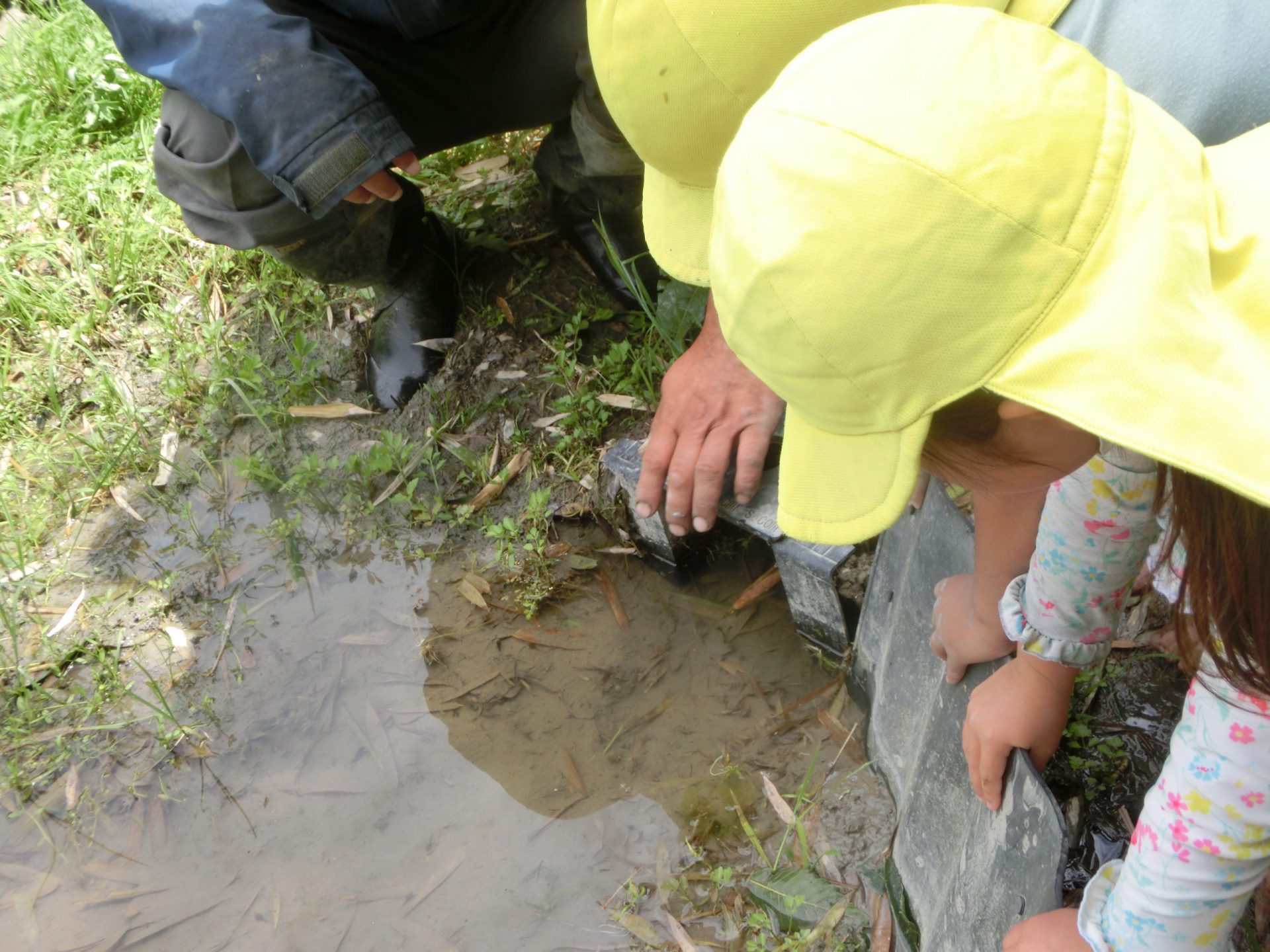 水田がよい環境だと出てくると言われているホウネンエビがいました。写真にはうまく写らなかったので、興味がある方はお調べください。