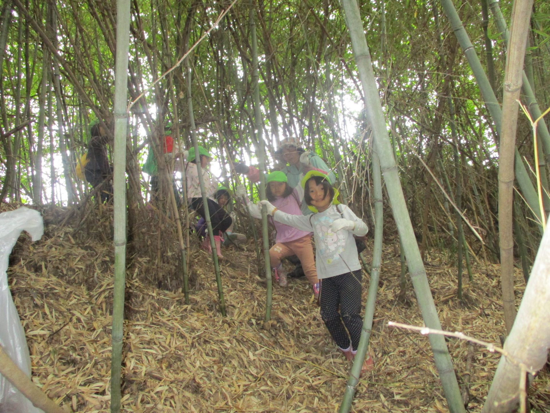 年少、年中さんは竹林の手前のほうでたけのこ採りをしました。