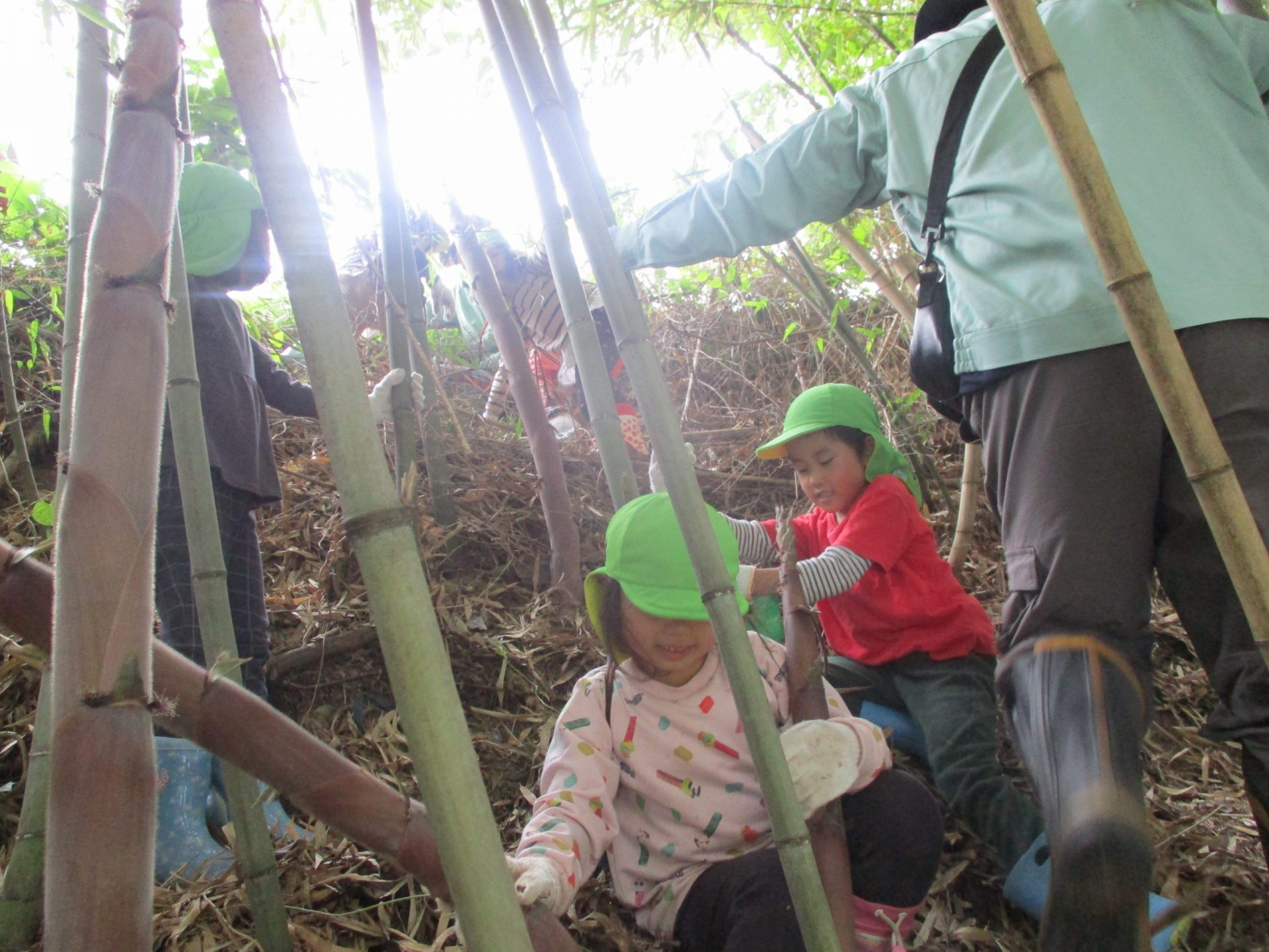 ・採ったたけのこを食べることも楽しみの一つになっている子どもたち。今日体験したことを話題にしながら、家庭でもたけのこを楽しんでもらえるといいなと思います。どうやって食べたのか、また子どもたちと話をしてみたいです。