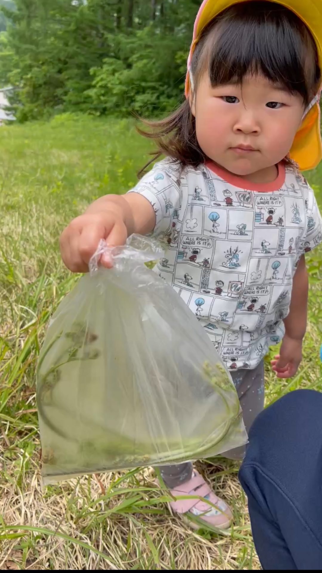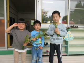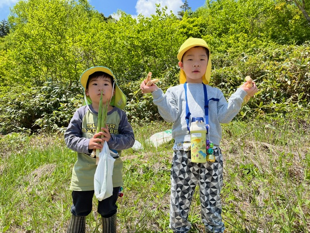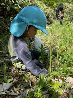 うれしそうに採れたわらびを見せてくれた未満児さん。未満児さんも山を登るのは全然平気です。