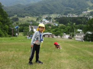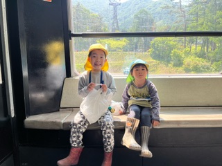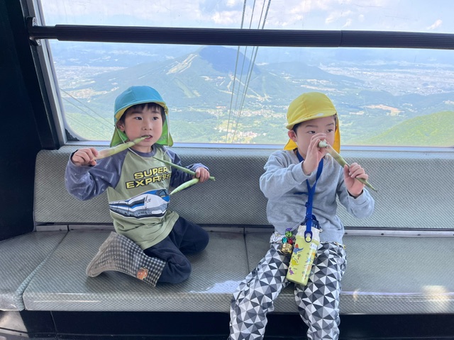 後日 今度は別のスキー場でロープウェイに乗りたけのこ狩り行きました。普段乗らないロープウェイに嬉しそうな子どもたち。いい景色を見ながらおしゃべりしていました。