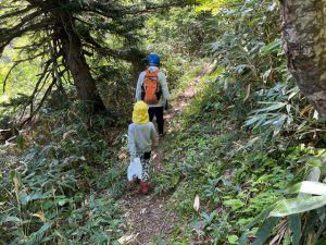 山頂に着いたらたけのこ狩りスタートです。地域のたけのこ狩りのプロのおじさんについていき、山道を歩きながらたけのこを探します。