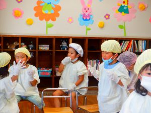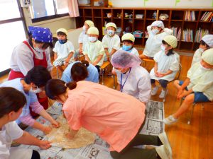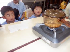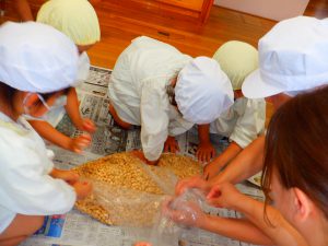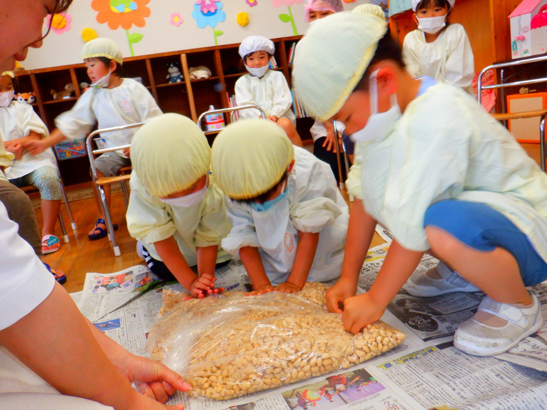 毎年体験を重ねる中、年長児の中には「次は〜だよね」と味噌作りの行程を予測している姿もあり、積み重ねの大切さを感じている