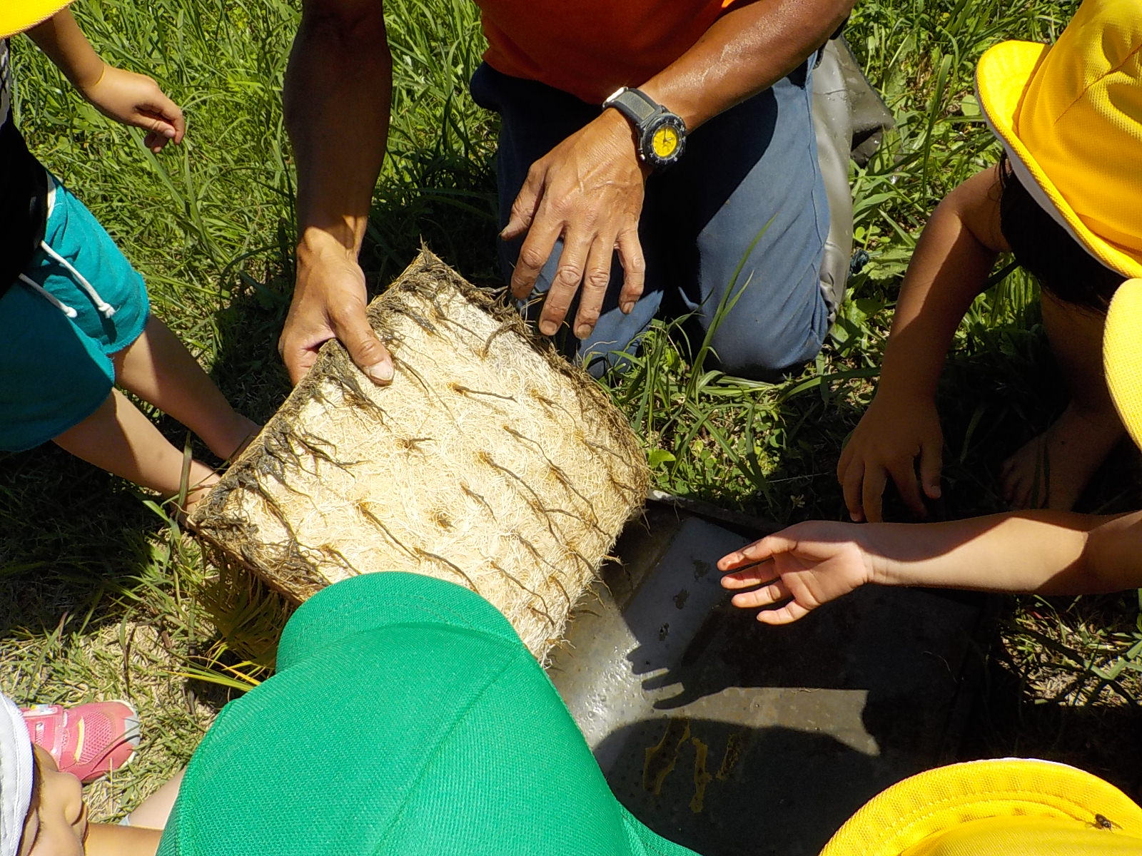 苗箱をひっくり返してみると根っこがいっぱいでびっくり!