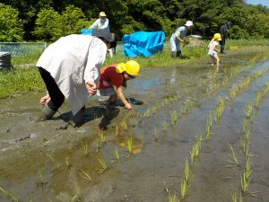 今年も地域の清水さんの田んぼで、長谷川さんにお世話になりながらお田植えをしました。