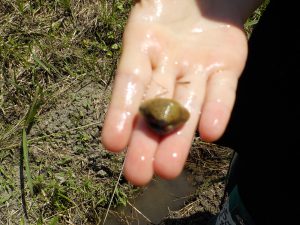 近くの水路でシジミやカワニナを発見!