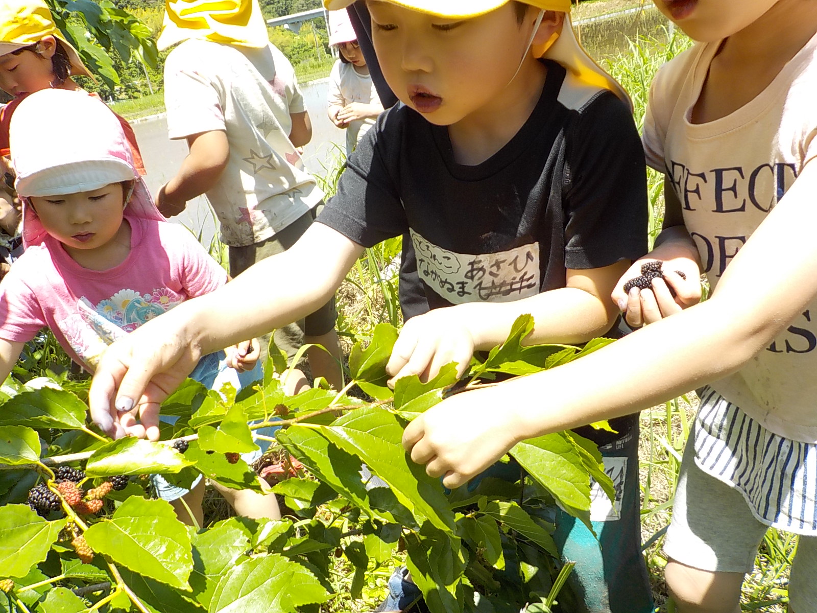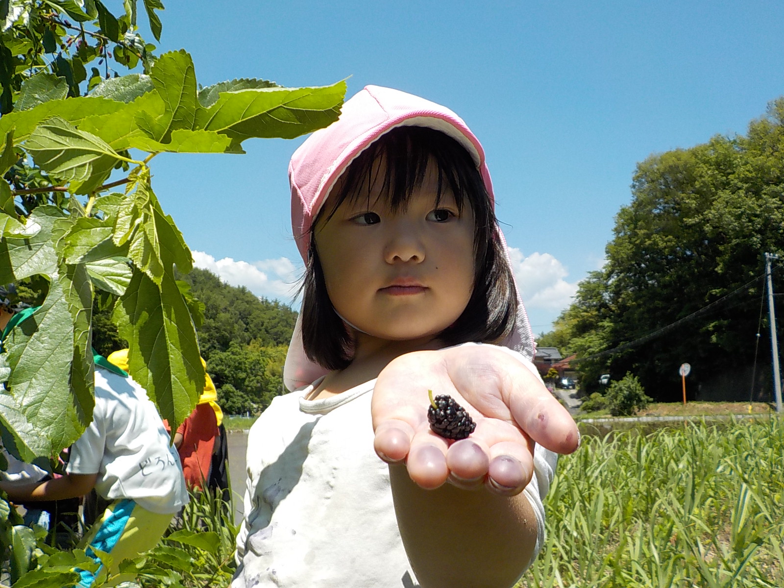 田んぼの横には桑の木があって、桑の実も見つけました。