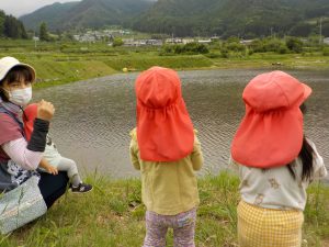 「カエルのうたがきこえてくるよ」歌い出す子もいます。