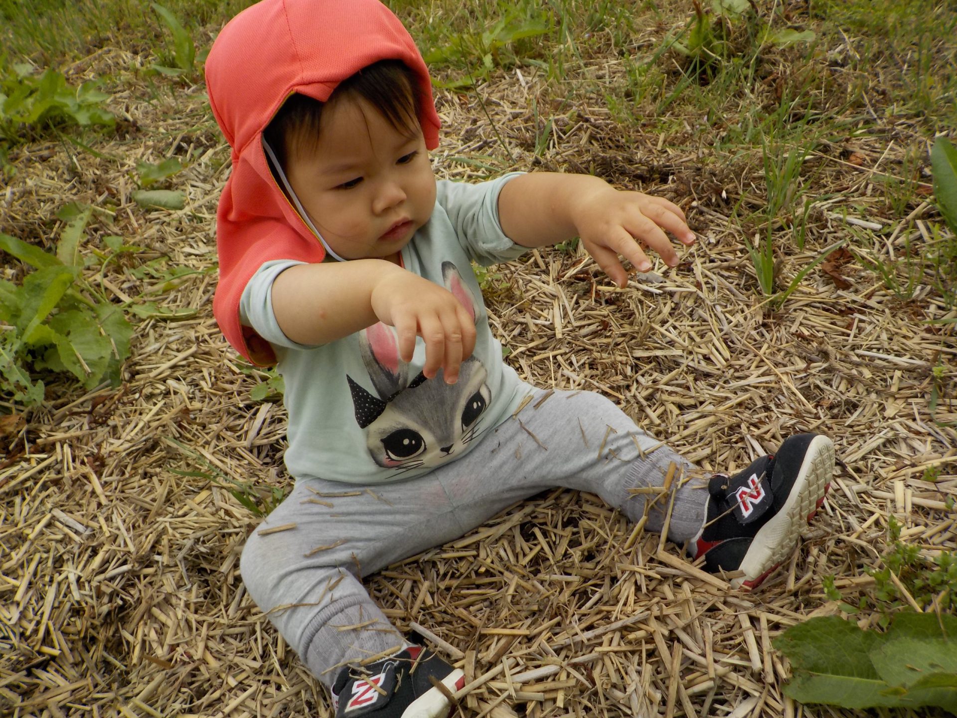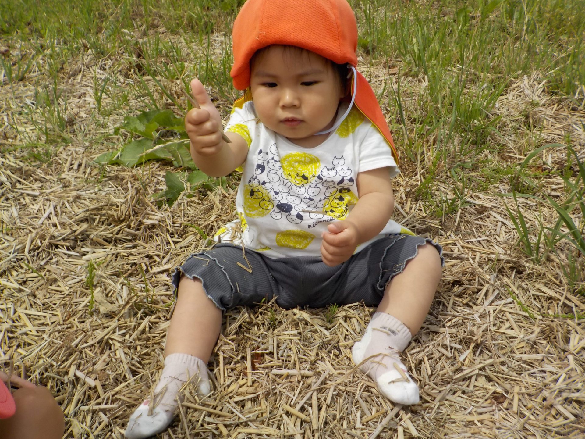 ・つかんだ藁をじっと見つめる表情は真剣で、まだ知らなかったことを知ることが経験できた散歩になりました。