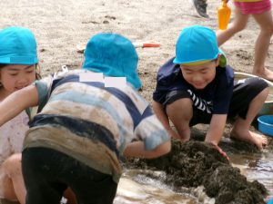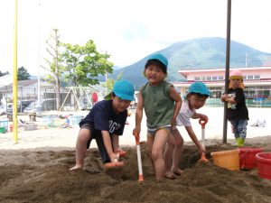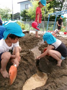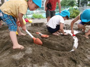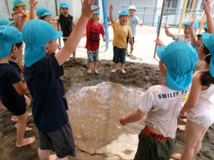 そんな中、砂遊びの時から穴掘りを行っていた数人の男の子たち。