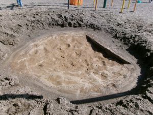 その後数日間は同じ場所に穴を掘り、水を入れ、飛び込むという遊びを楽しむと、次は別のところに工事現場は移動。