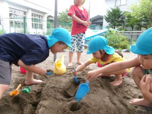 砂や水などの決まった形がないものから何かを作り出し、そのイメージを友だちとも共有して作っていく。簡単そうに見えてとても難易度の高いことですよね。