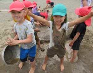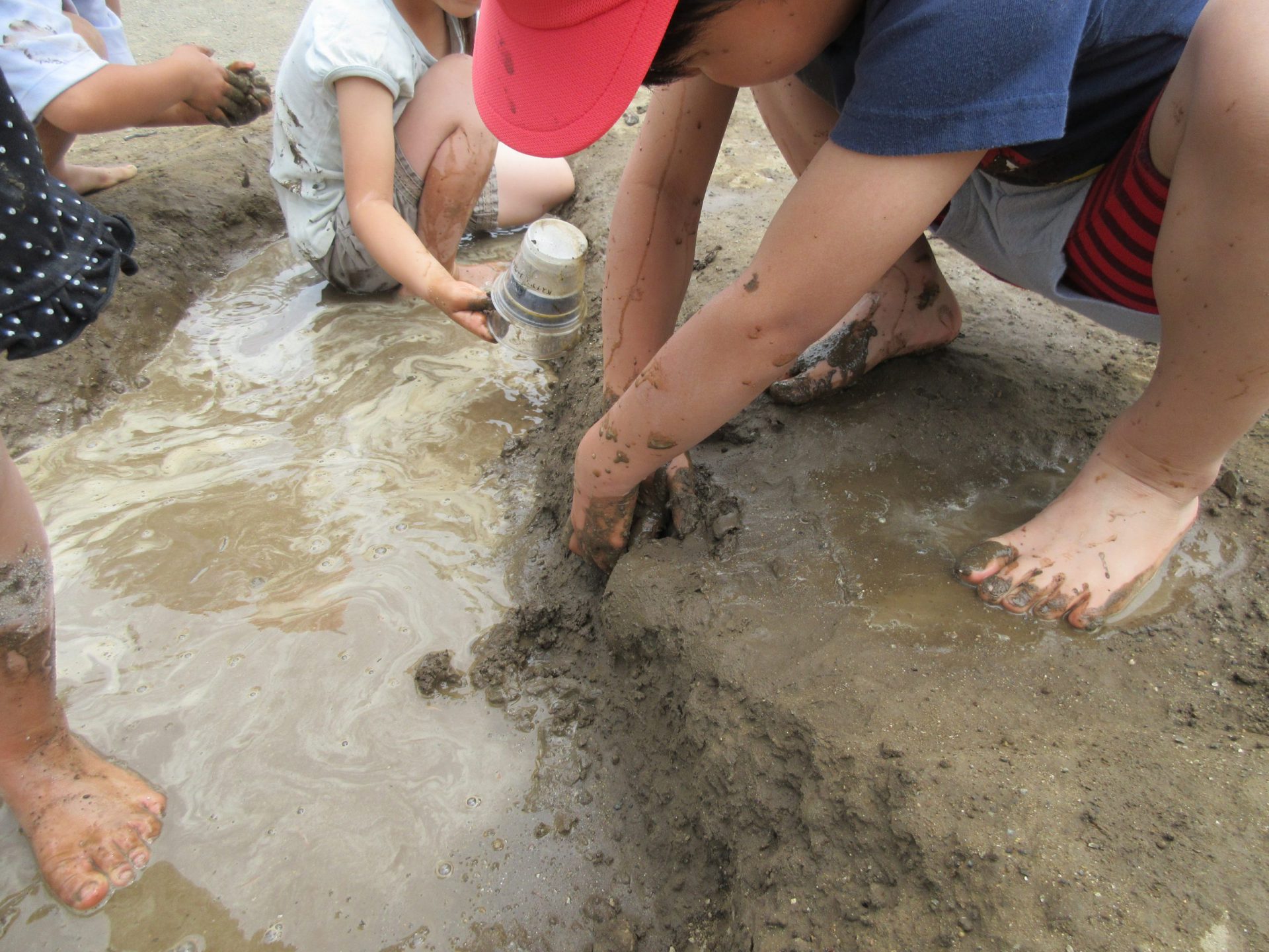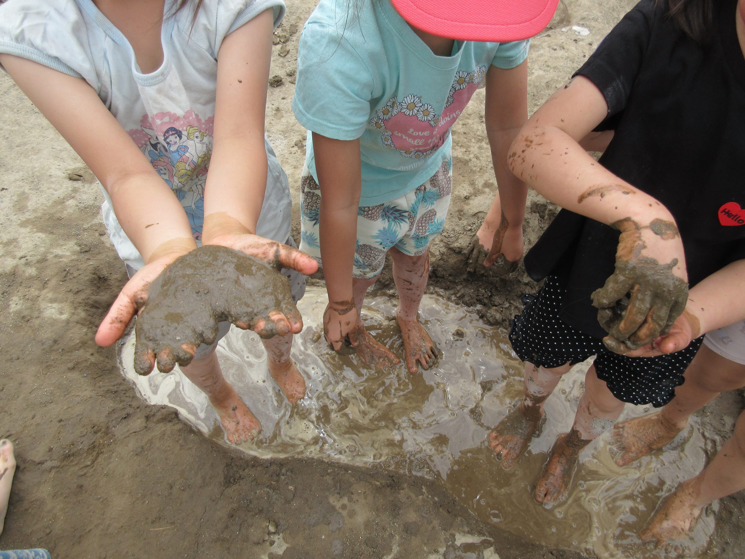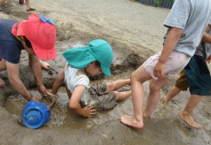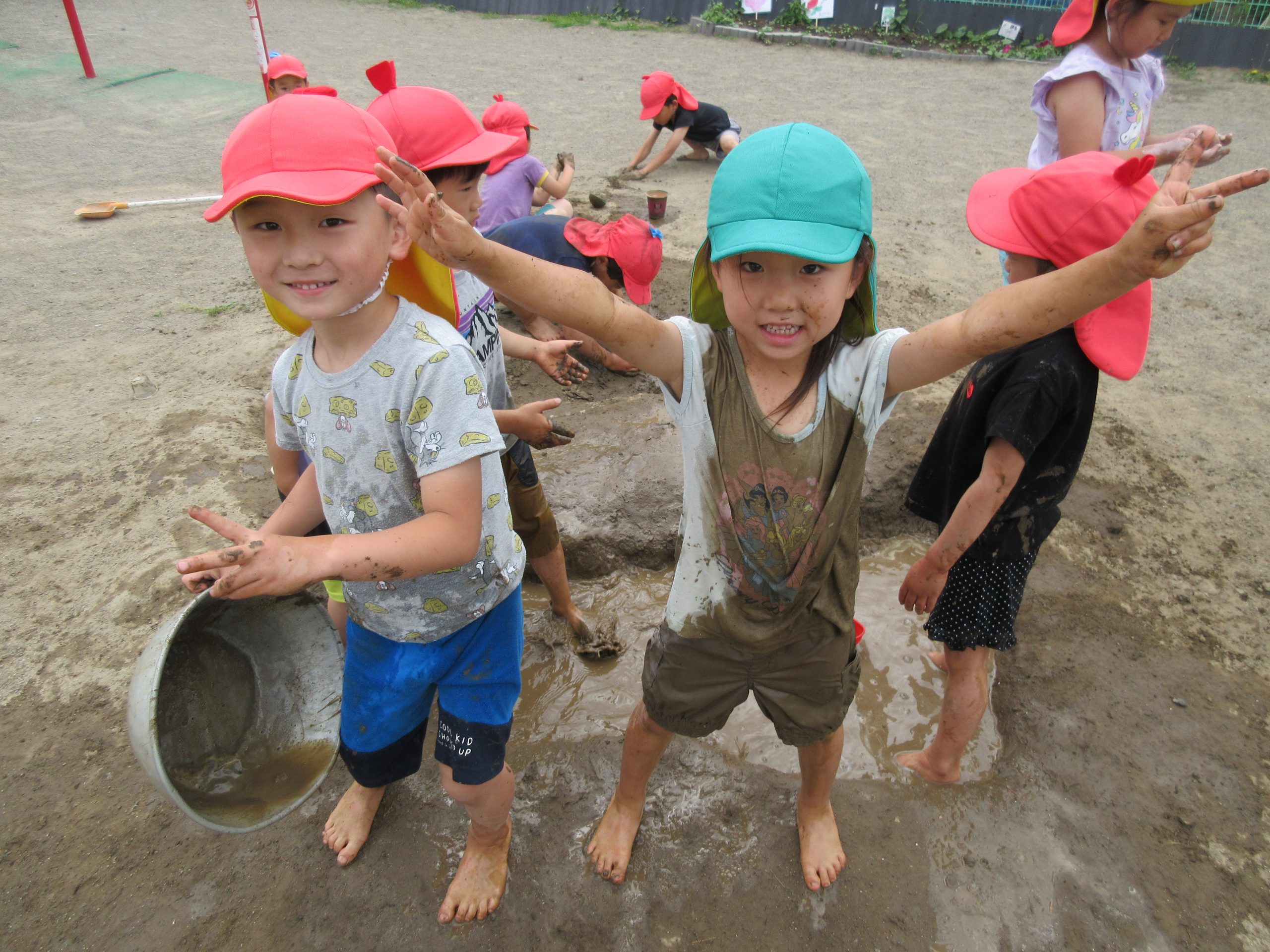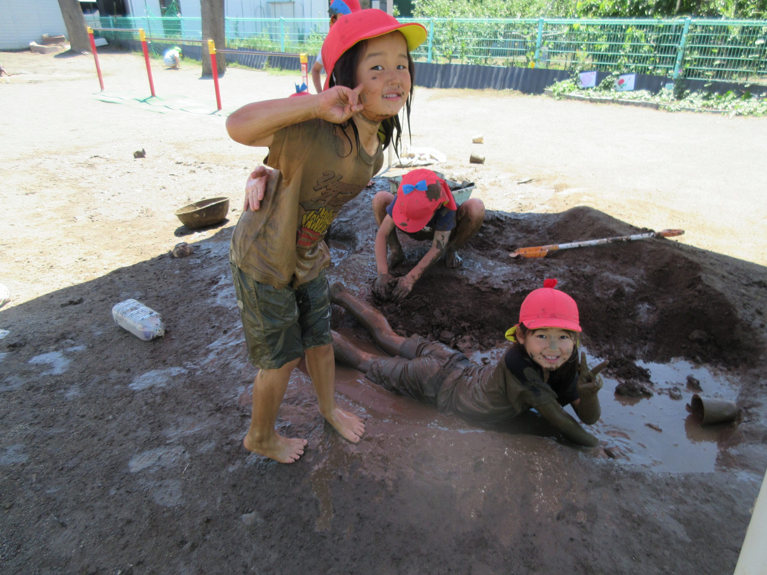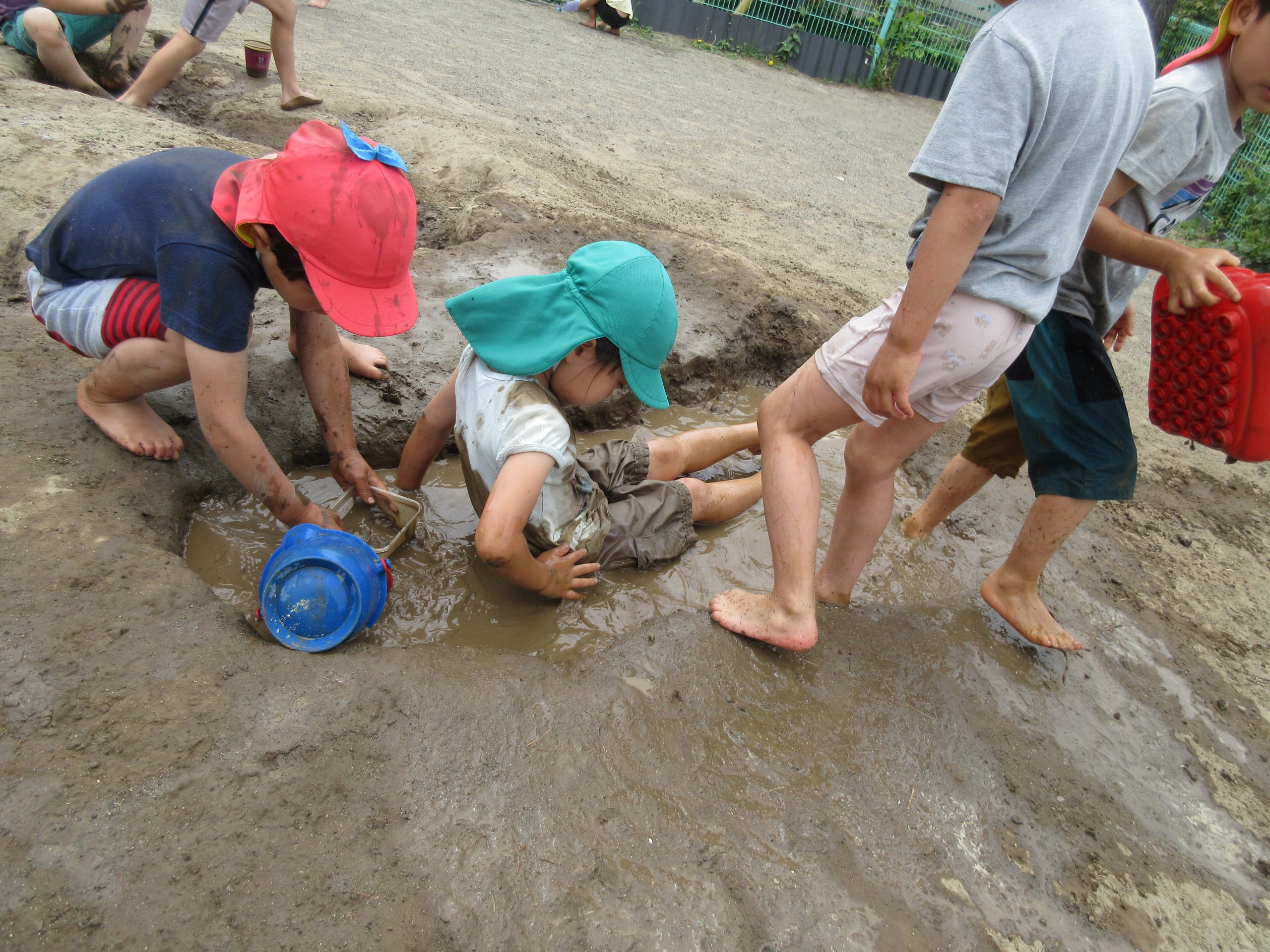 ・泥の感触だけでなく、泥が出来上がるまでの過程も楽しんほしいと思い、子どもたちの姿を見守るようにしました。土が泥になっていく変化を感じたり、子どもたちの協力する姿につながったと思います。