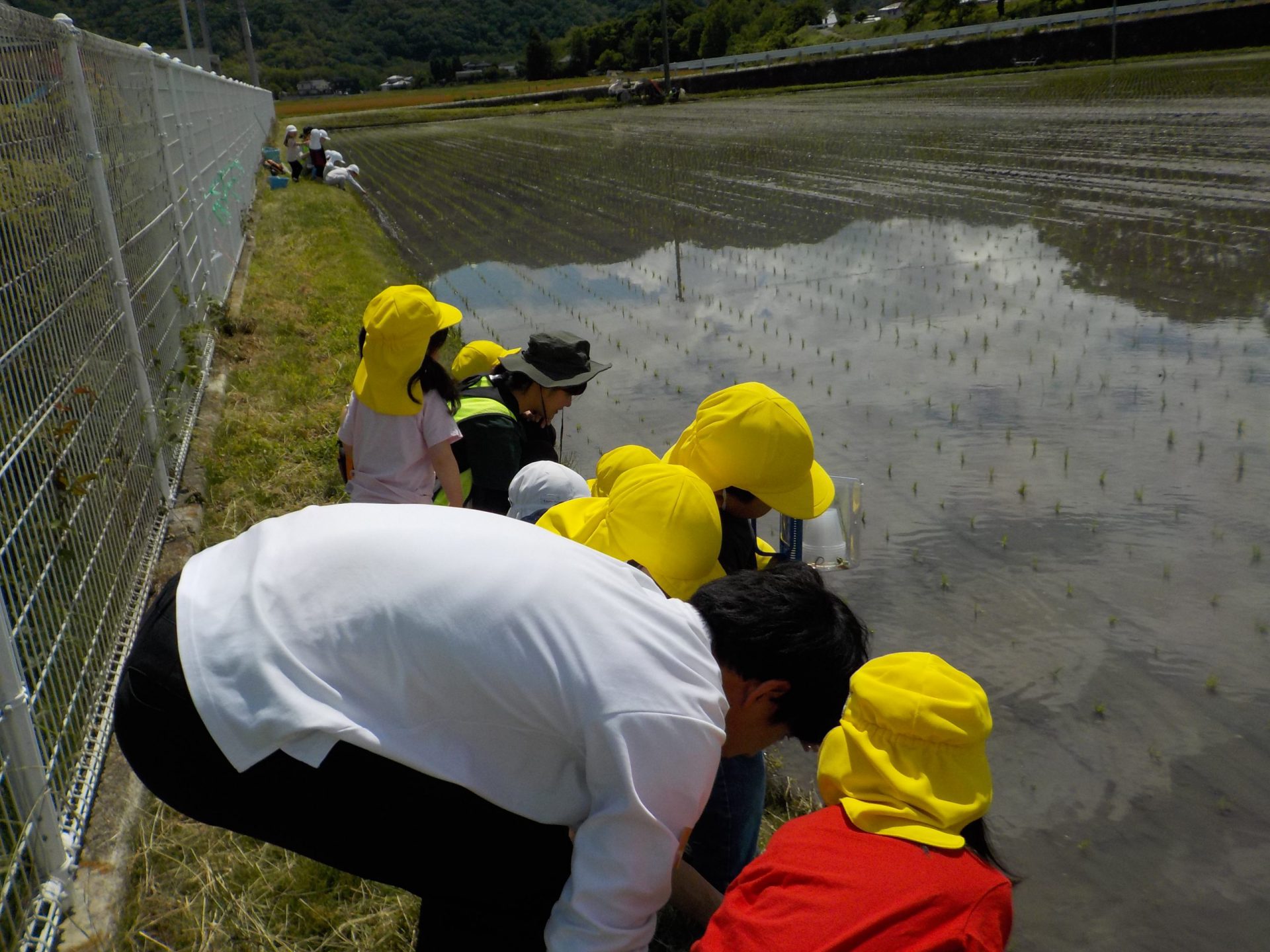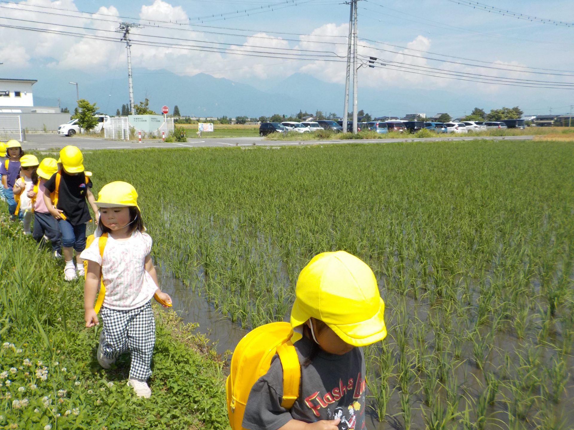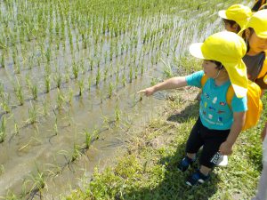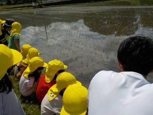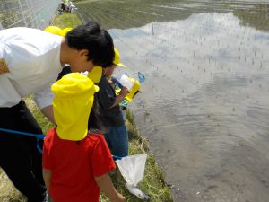 こども園の前の田んぼにおたまじゃくしを取りに行きました。