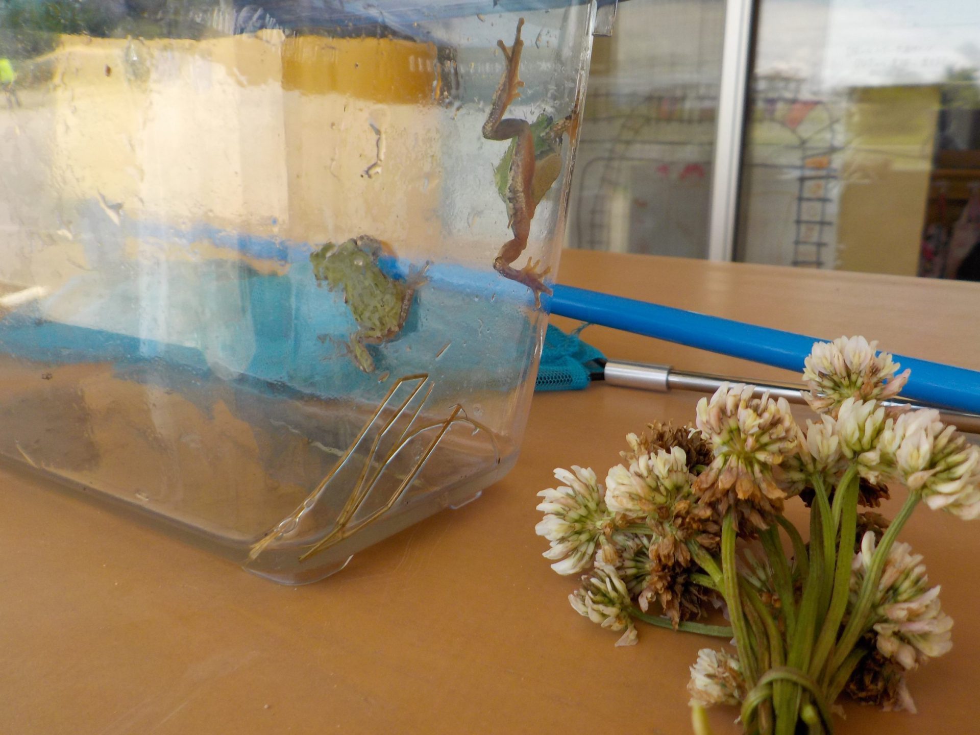 変わった水の生物とかえるを捕まえました。