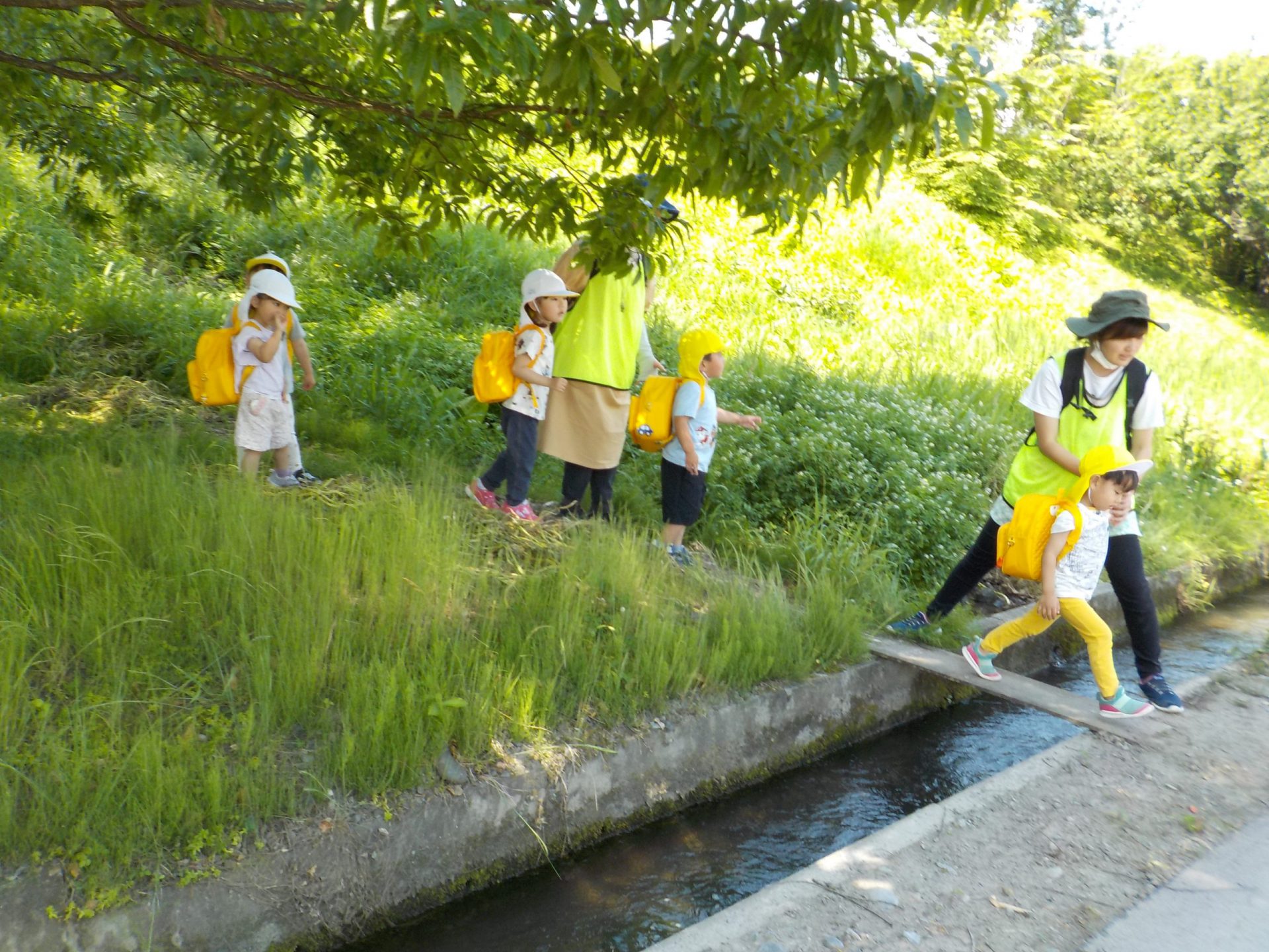 保育参加でお家の人と一緒に散歩に出かけたり、地域の方のご協力で安全に、楽しく、自然の中で遊ぶ経験をさせてもらっています。