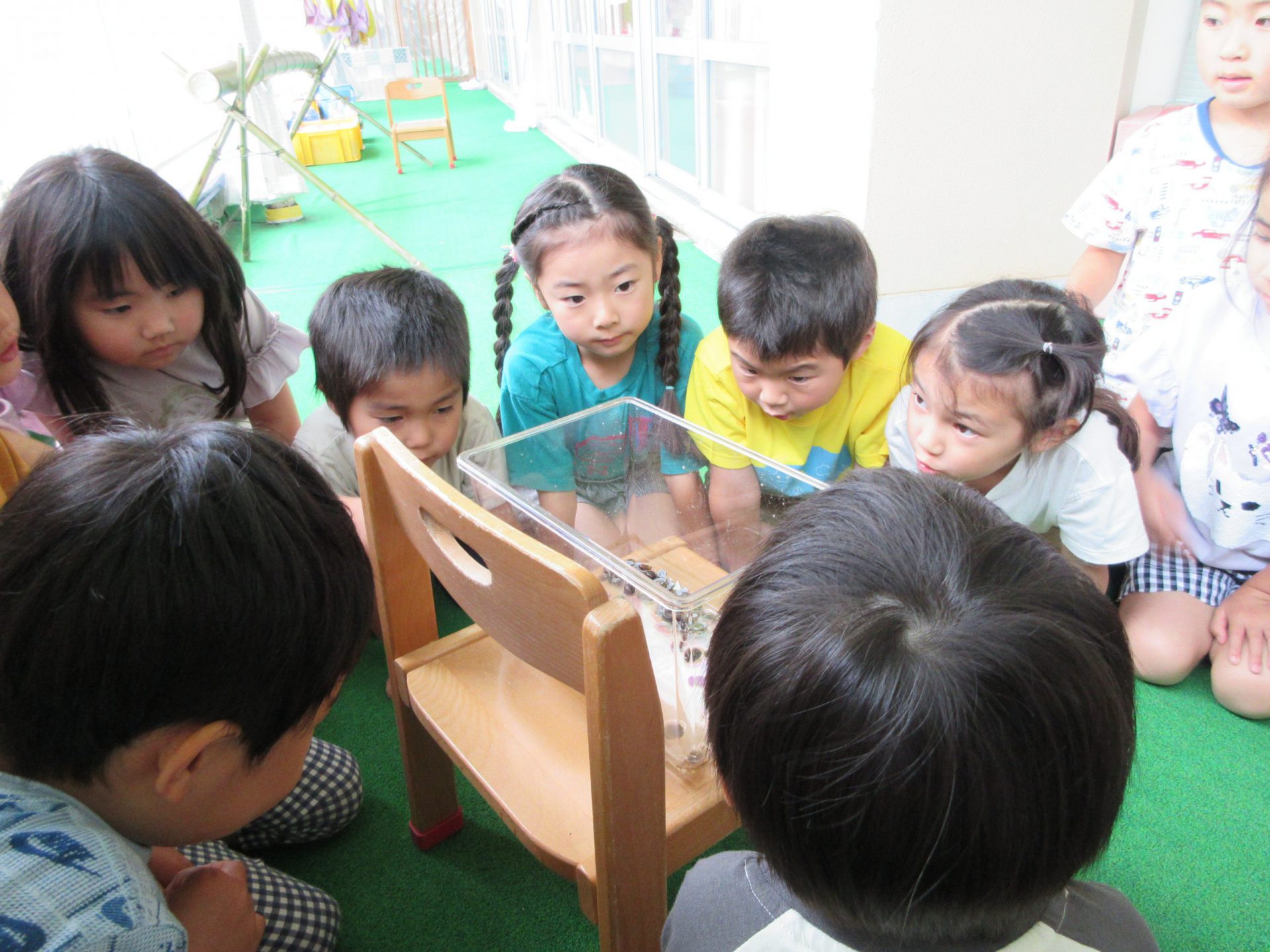 ・保育士も子ども達と一緒に発見を楽しみたいと思い、保育士が答えを言わず、「何でだろう?」を一緒に確かめ、見守ることにしました。