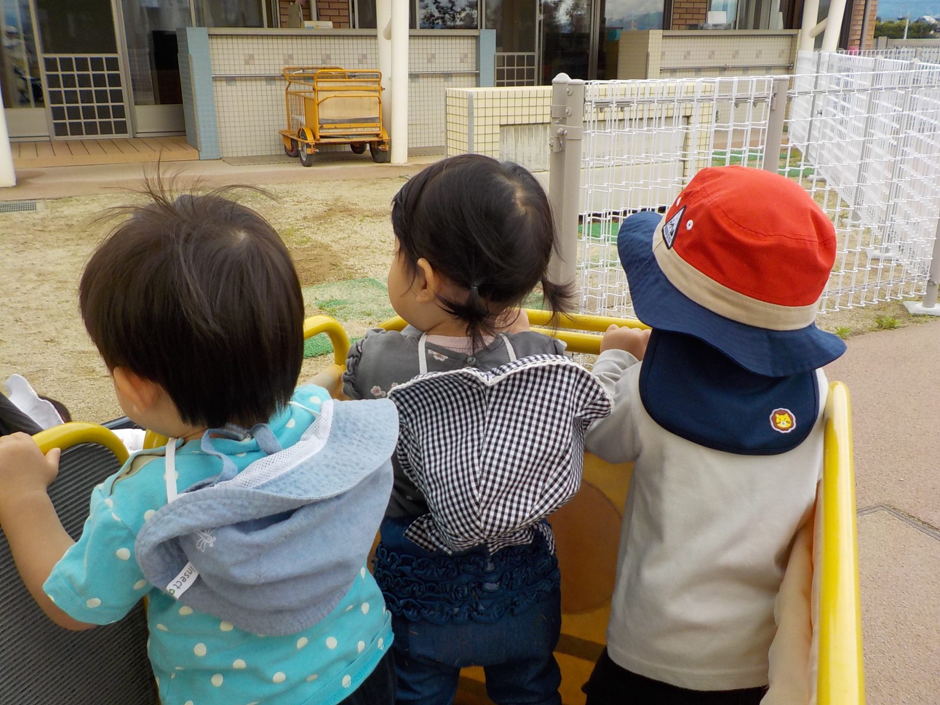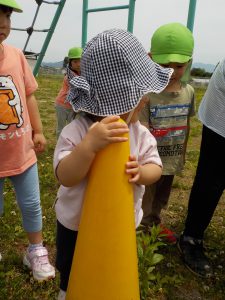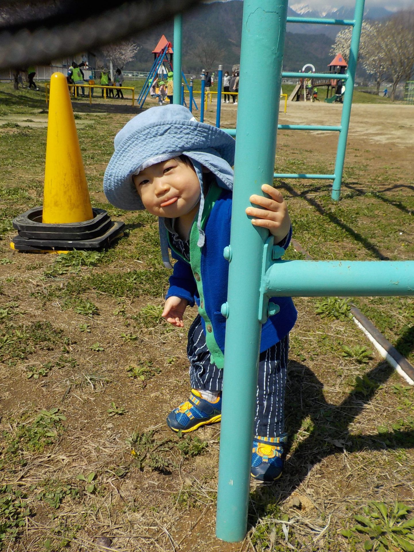 ひょこっと大きな遊具から顔をのぞかぜたりしました。(遊具って大きいなぁ・・・)