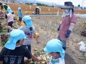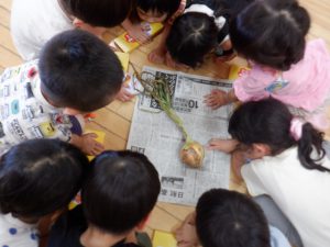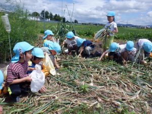 自分で収穫した玉ねぎをどうやって食べたいかを子どもたち同士嬉しそうに話し合っていました。