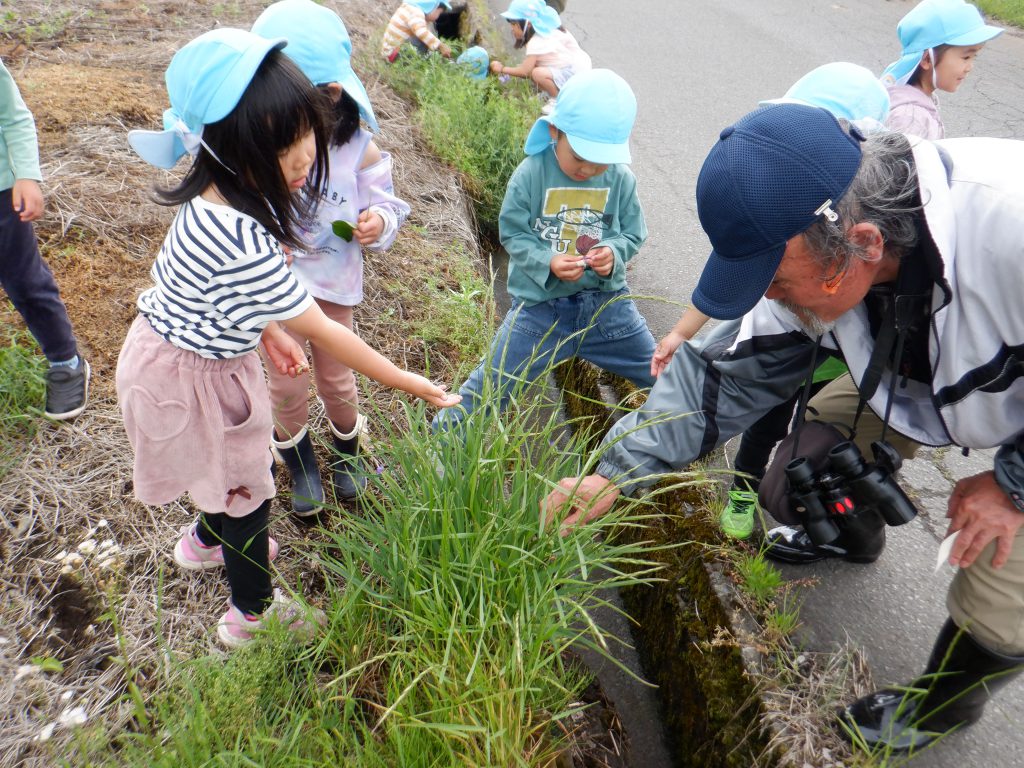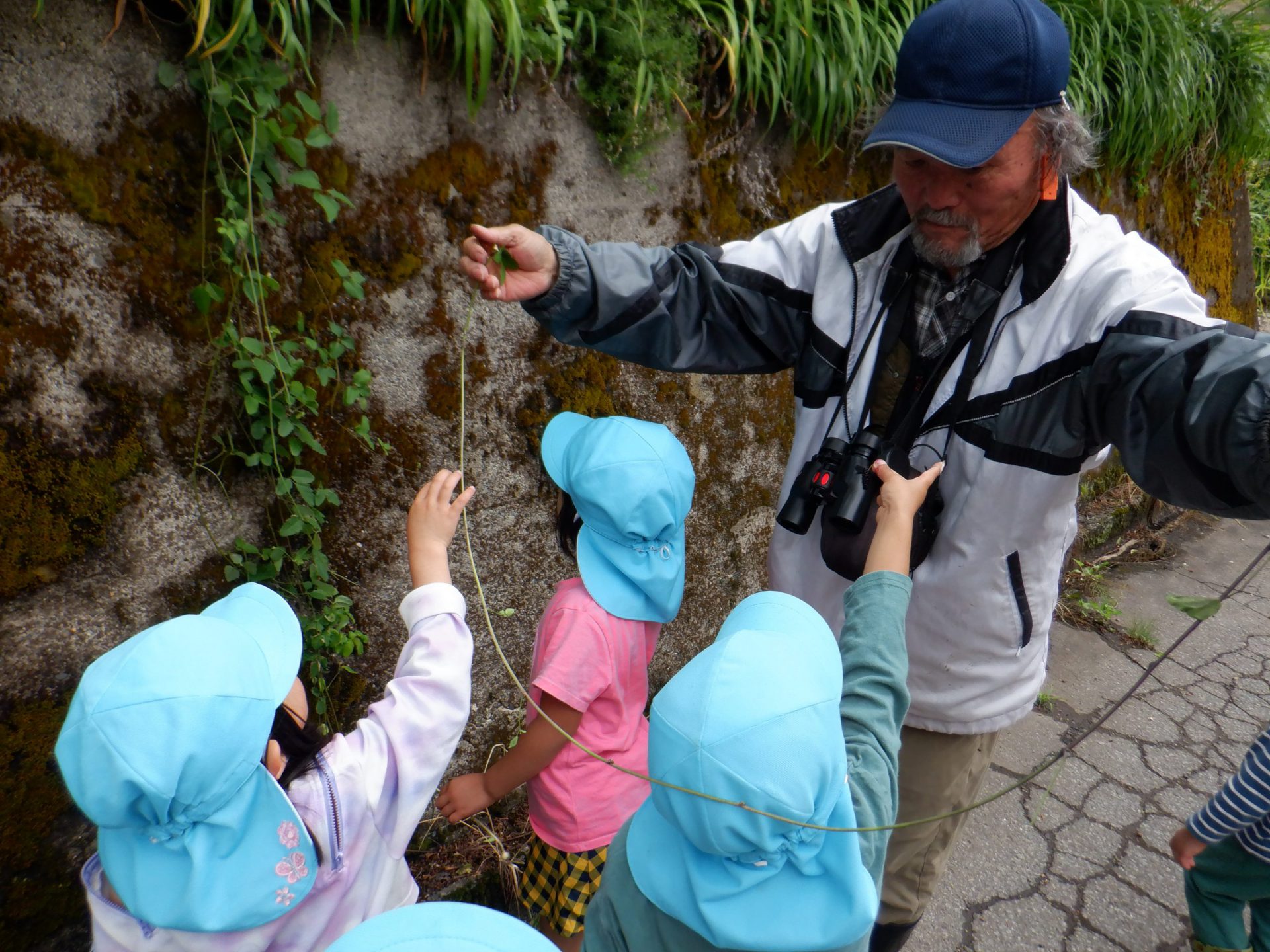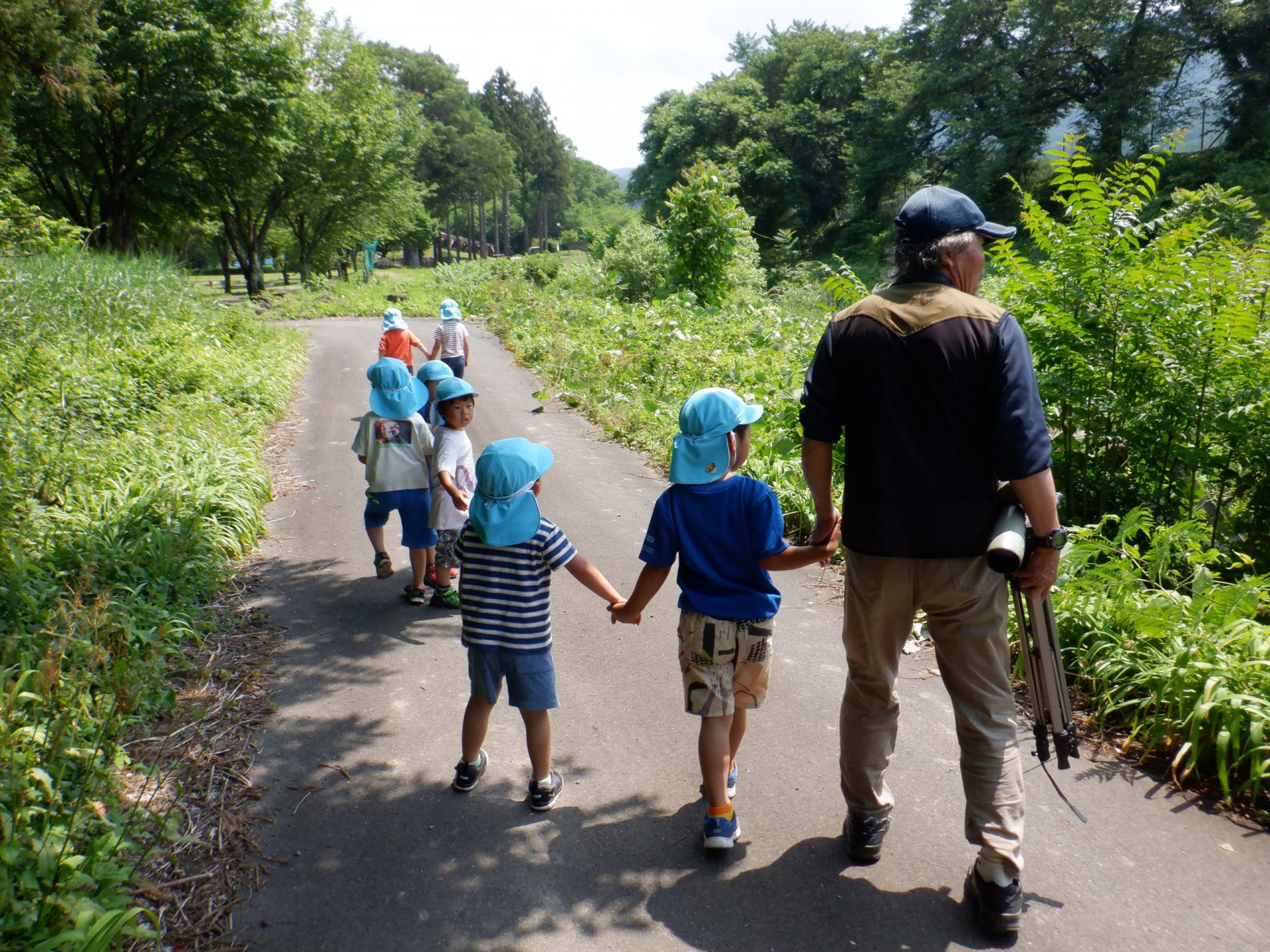 保育する中で、保護者と保育園、そして地域を巻き込んだ子ども真ん中の環境を作っていきたいと思っていた。地域の人から声を掛けてくれ、子ども達に目を向けて頂いている感謝の思いを感じながら、身近な散歩道を違った目線で歩きたかった。様々な人との関わりの機会を作ることの一つとして、それぞれの形で交流できたのが嬉しく思う。その道のプロと歩く散歩は違った視線でワクワクドキドキできたと思う。自然との触れ合いの中で、集中してあそび込む姿がとても印象的だった。子ども達も普段の散歩道がこんなに楽しい事だらけで、道草ばかり食えるとは知らなかったでしょう!目的地へ向かう散歩でなく、発見たっぷりのゆったりまったりの散歩、これが私たちの散歩道(さんぽどう)です!