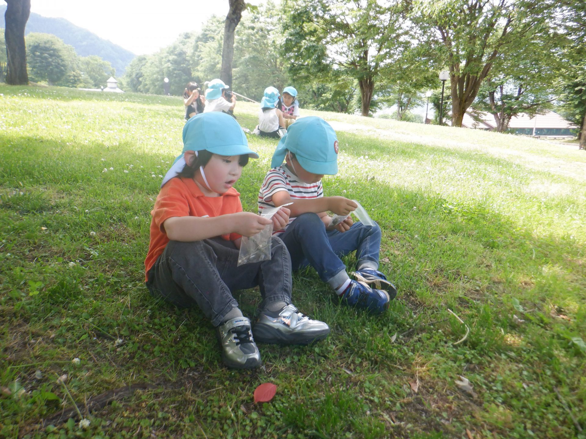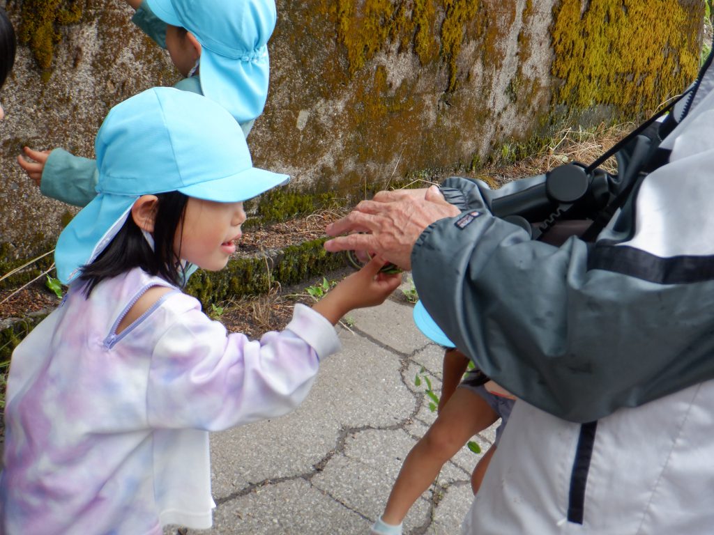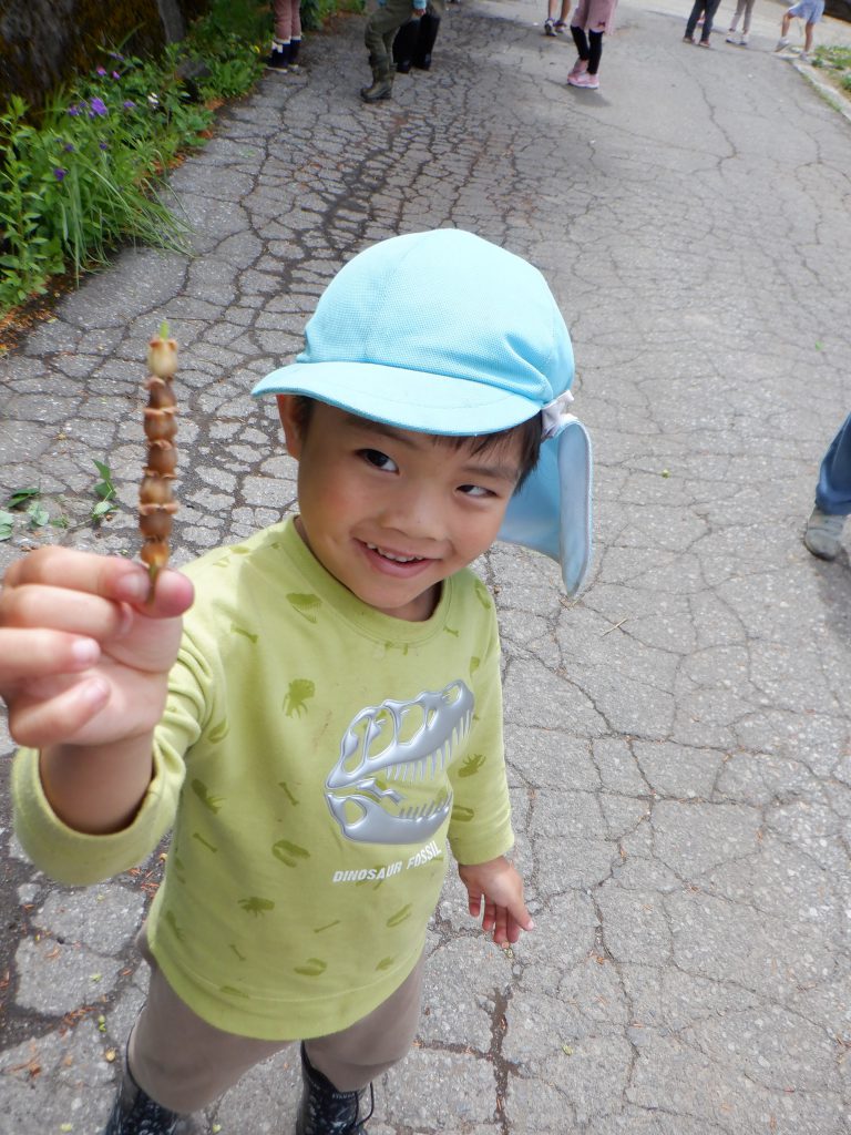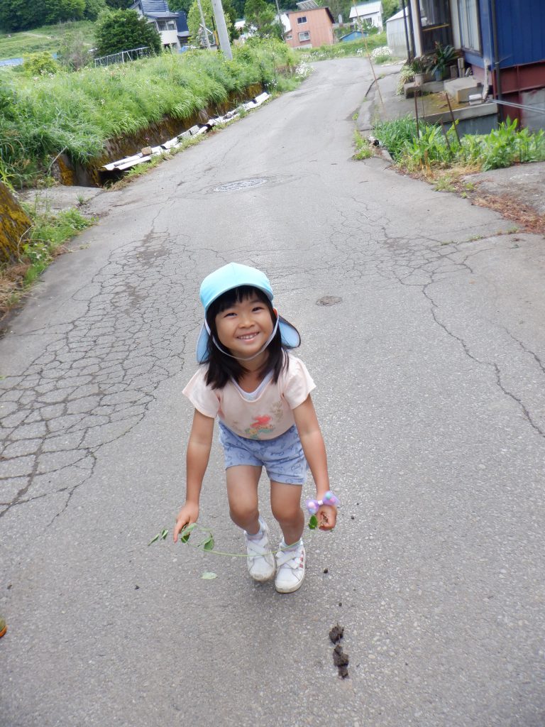保育する中で、保護者と保育園、そして地域を巻き込んだ子ども真ん中の環境を作っていきたいと思っていた。地域の人から声を掛けてくれ、子ども達に目を向けて頂いている感謝の思いを感じながら、身近な散歩道を違った目線で歩きたかった。様々な人との関わりの機会を作ることの一つとして、それぞれの形で交流できたのが嬉しく思う。その道のプロと歩く散歩は違った視線でワクワクドキドキできたと思う。自然との触れ合いの中で、集中してあそび込む姿がとても印象的だった。子ども達も普段の散歩道がこんなに楽しい事だらけで、道草ばかり食えるとは知らなかったでしょう!目的地へ向かう散歩でなく、発見たっぷりのゆったりまったりの散歩、これが私たちの散歩道(さんぽどう)です!