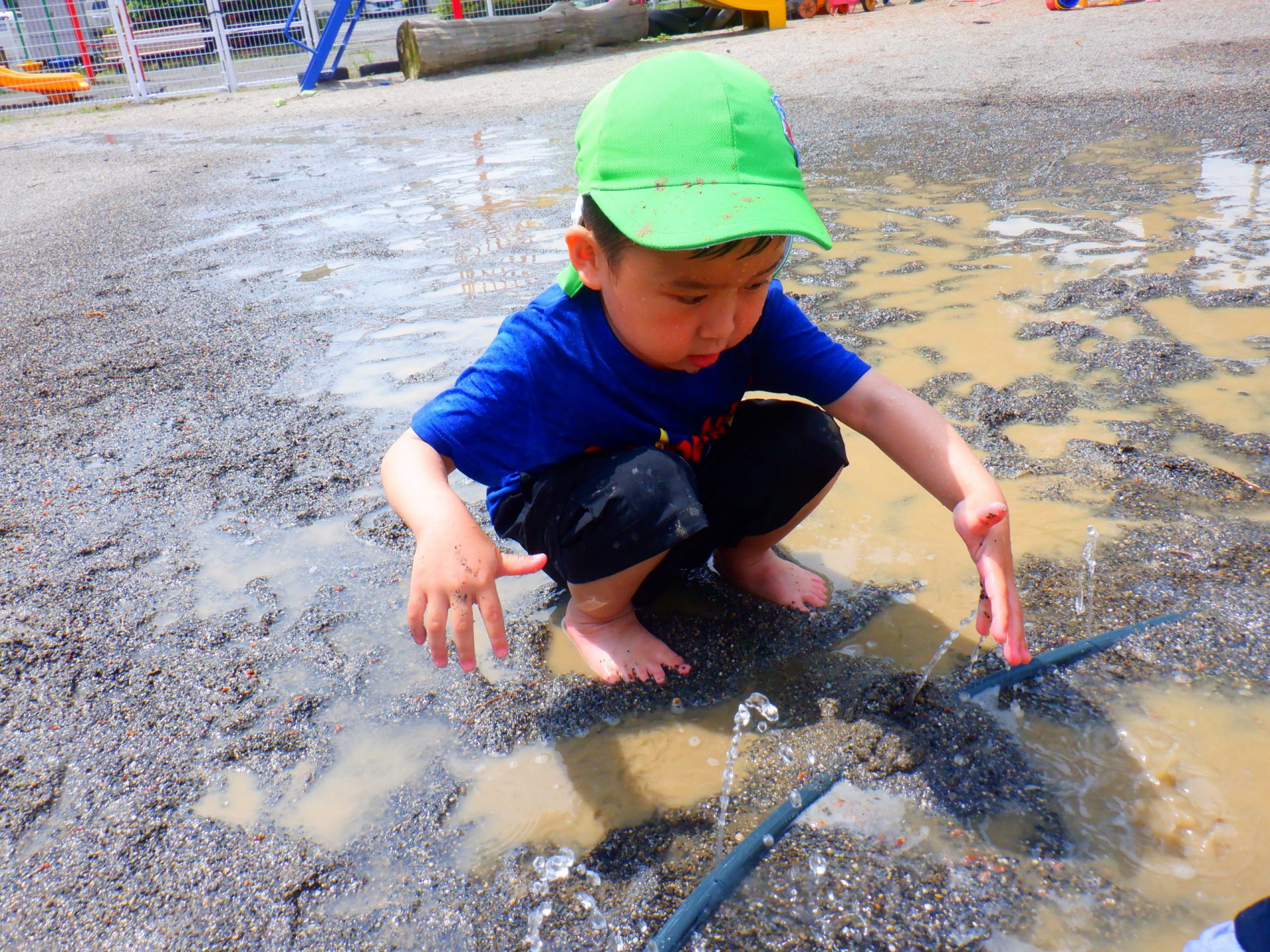 砂場に穴を掘って楽しんでいた水遊び!!「温泉つくるぞー!!」