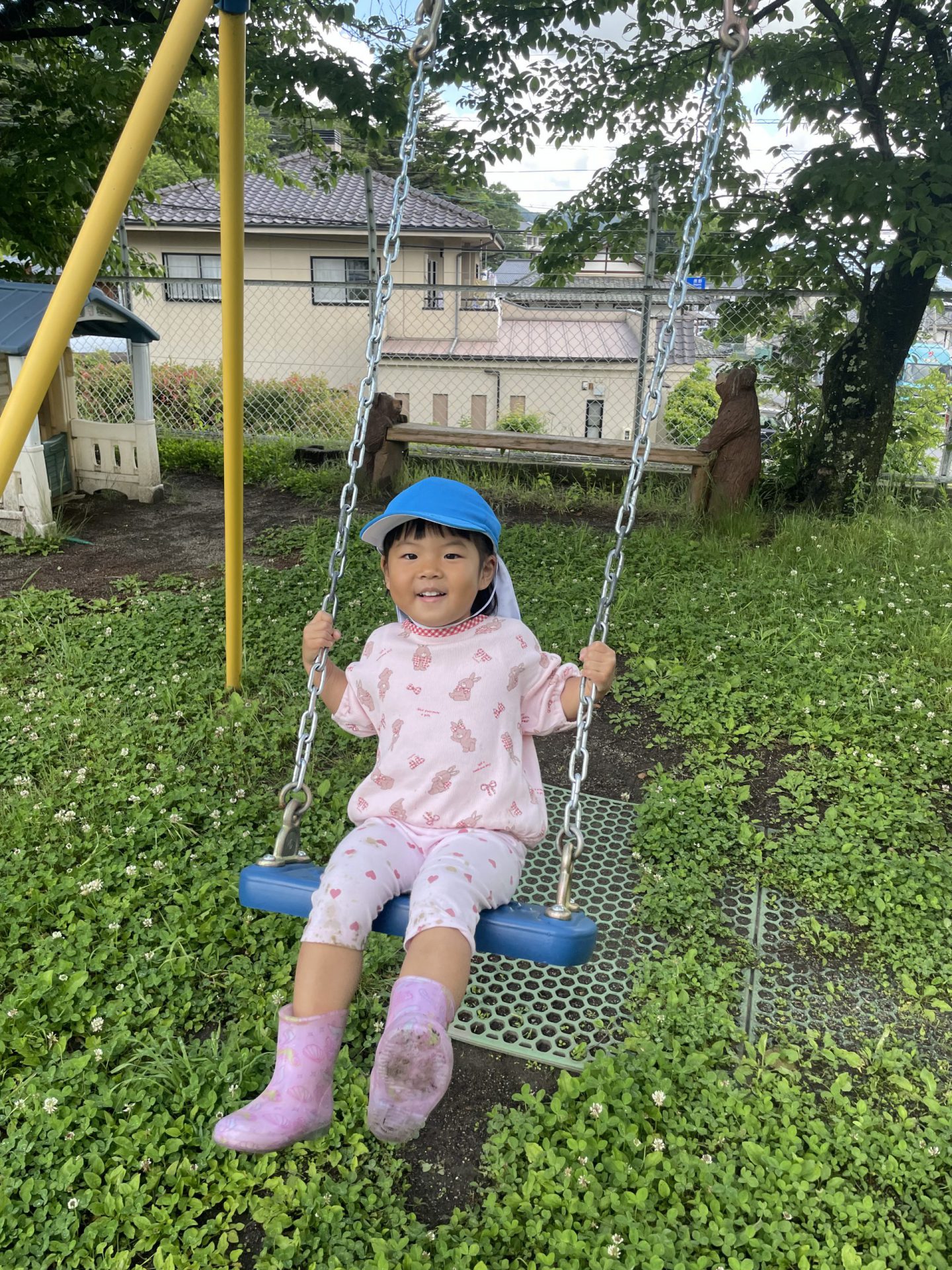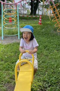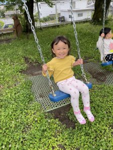 園庭にはもちろん遊具もあります。「風が気持ちいい~」