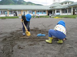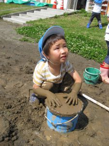 活動を積み重ねている中で、地層のような土に気づいたり、泥の性質にも目を向ける子どもたちに、