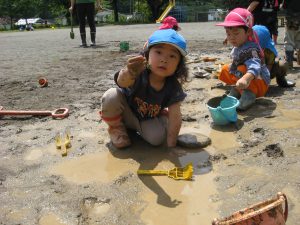みんな夢中で遊んで、園庭が大好きになった年少組の子どもたちです。