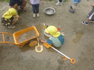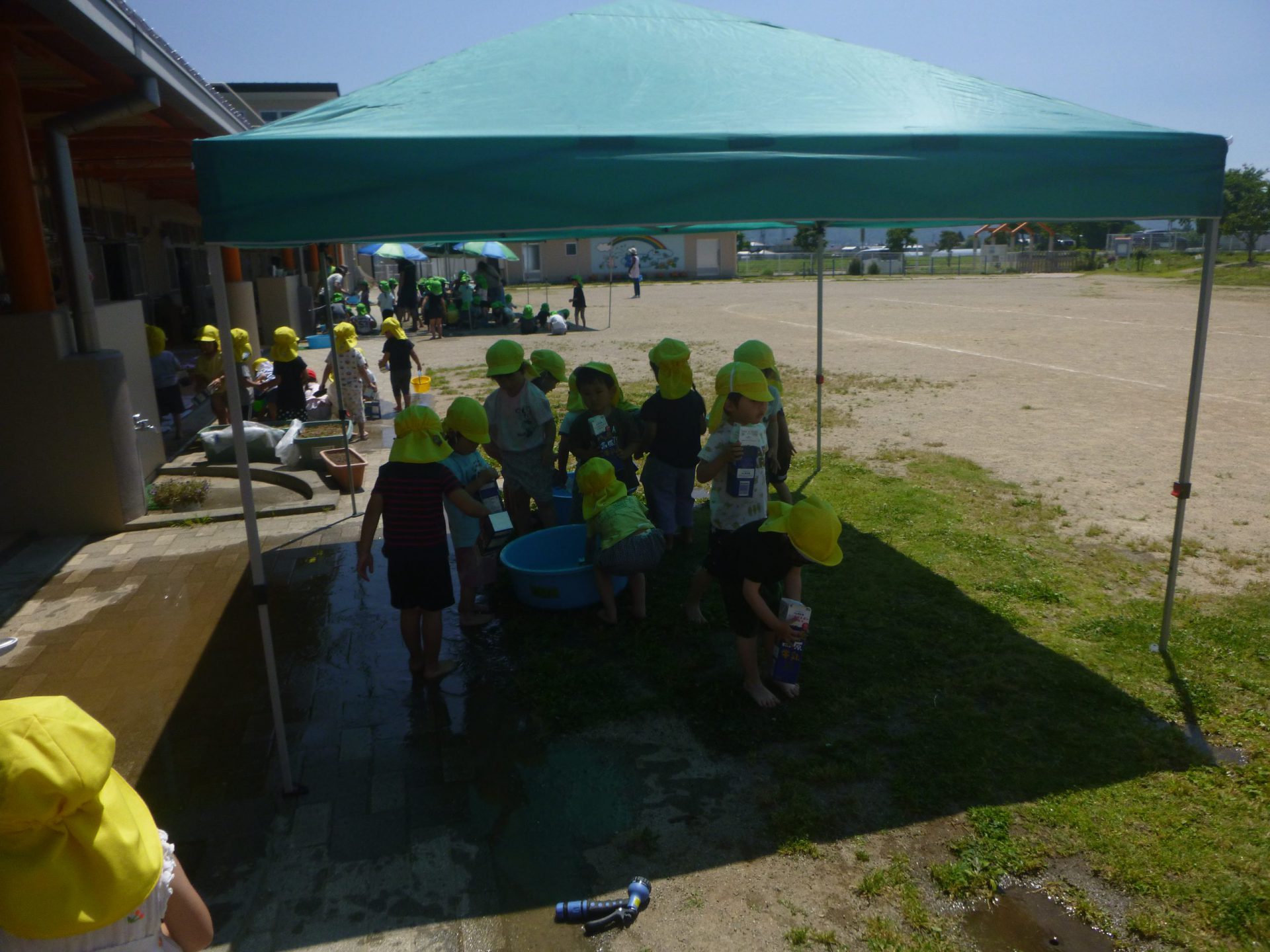 水や感触の変化、冷たさ、暖かさを感じながら遊ぶことができて満足できる活動ができました。満足感が子どもたちの心の成長につながっていくことを願っています。