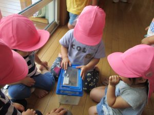 ちょうちょに親しみを持った様子の子どもたち。