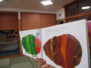 大好きな『はらぺこあおむし』の絵本に出てくるあおむしと似てるけど、なんかちょっと違う?と思ったみたいです。