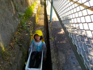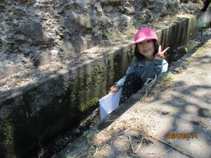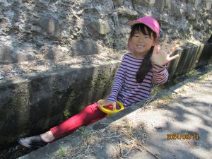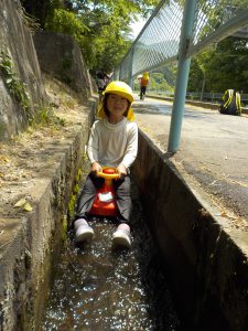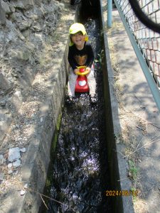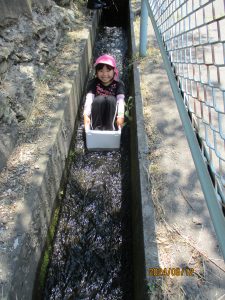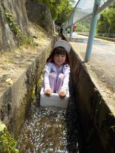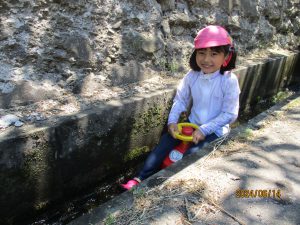 はい、早速用水路にはいって・・・「冷たい・・でも気持ちいい」人は入っても、ゴミは流さないお約束