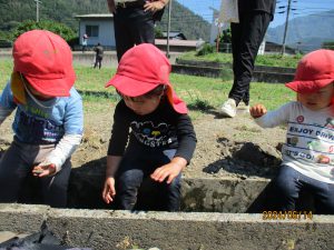 ・未満児は幼児の姿を見て、まねをしてみたい、一緒に遊びたいという気持ちが強く、その気持ちに寄り添えるよう必要に応じて援助している。