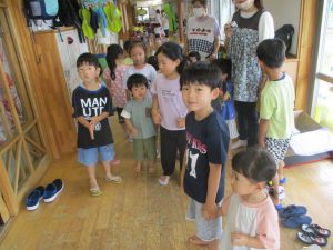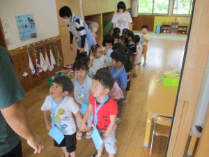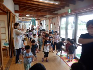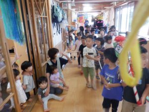 この日は幼児クラスで当番をし、未満児クラスがコーナーをまわります。