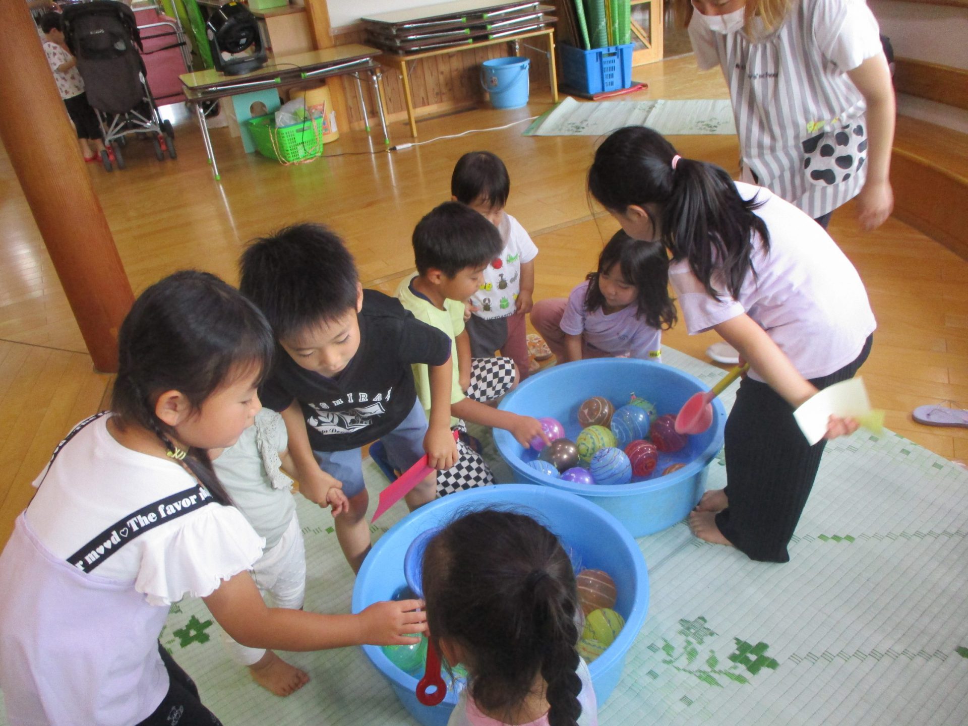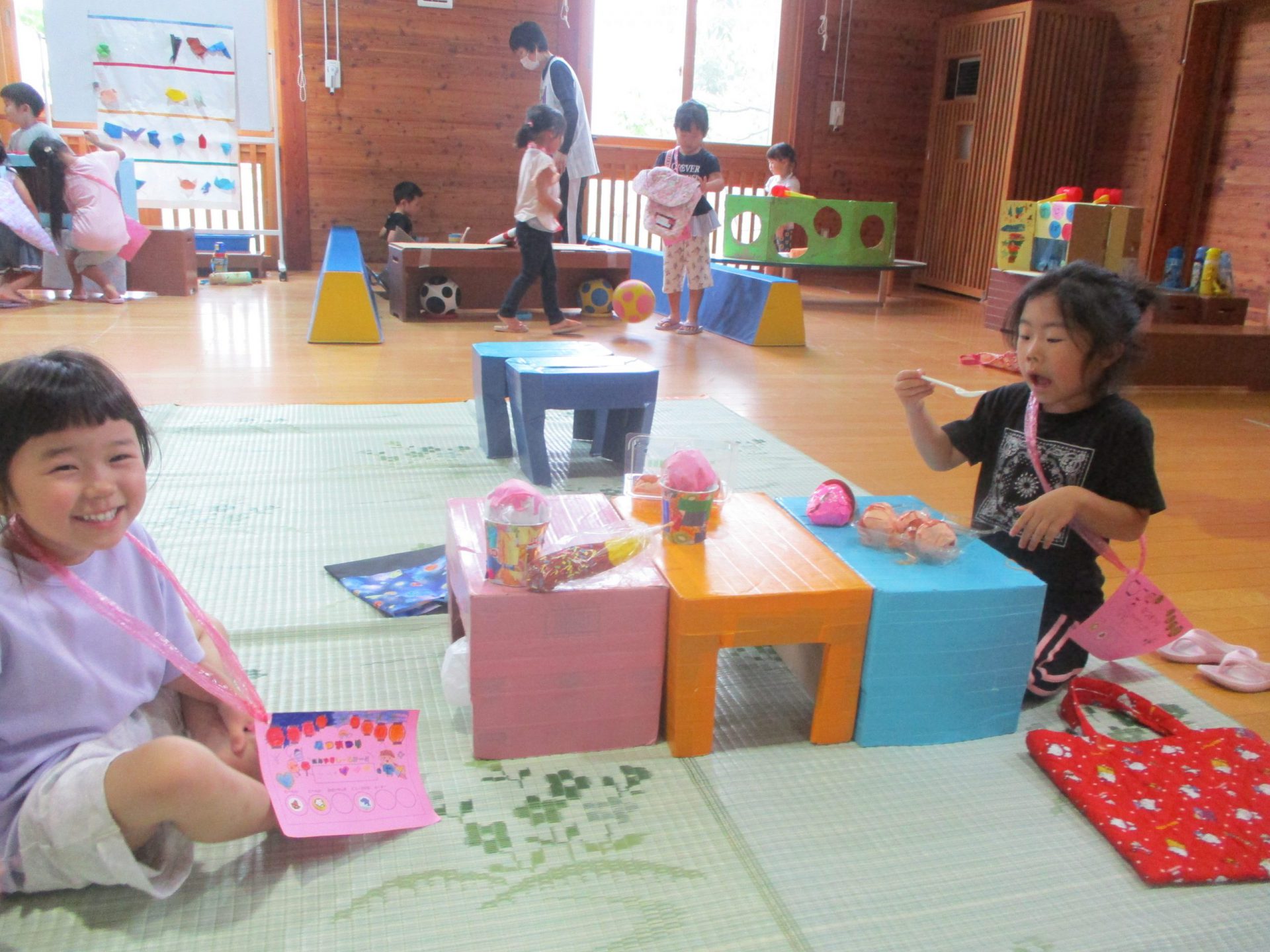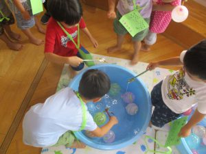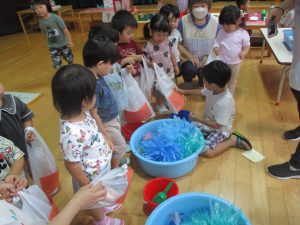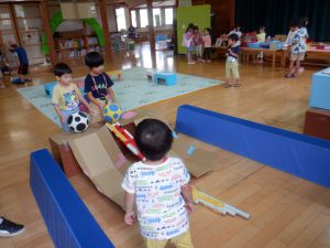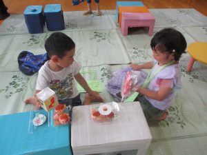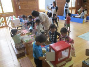 ・なつまつりは終わりましたが、来週以降もお店屋さんごっこなどを行い、余韻を楽しみたいです。
