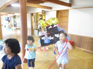 朝から雨でしたが、園内でおみこしと盆踊りを楽しみます。