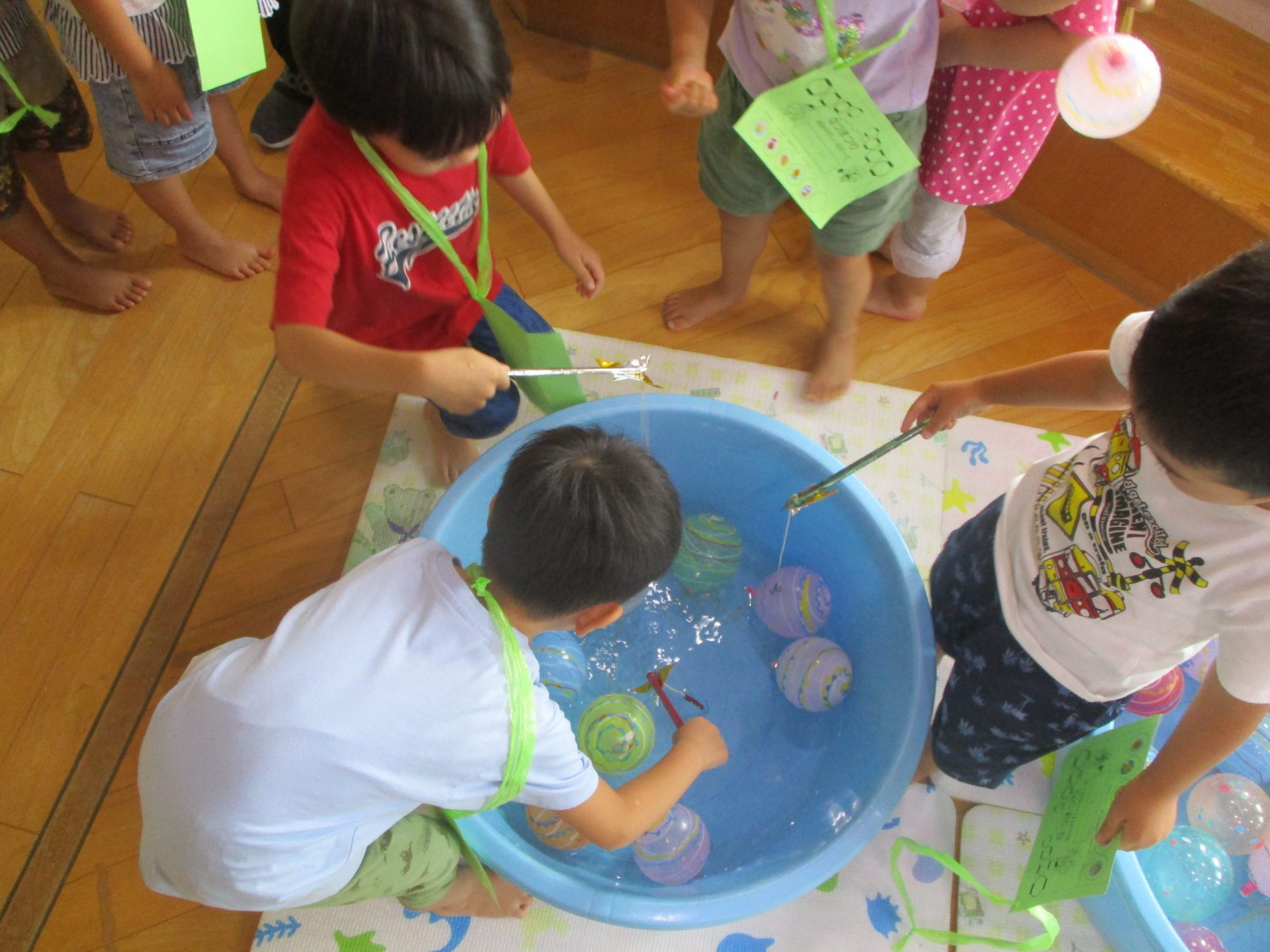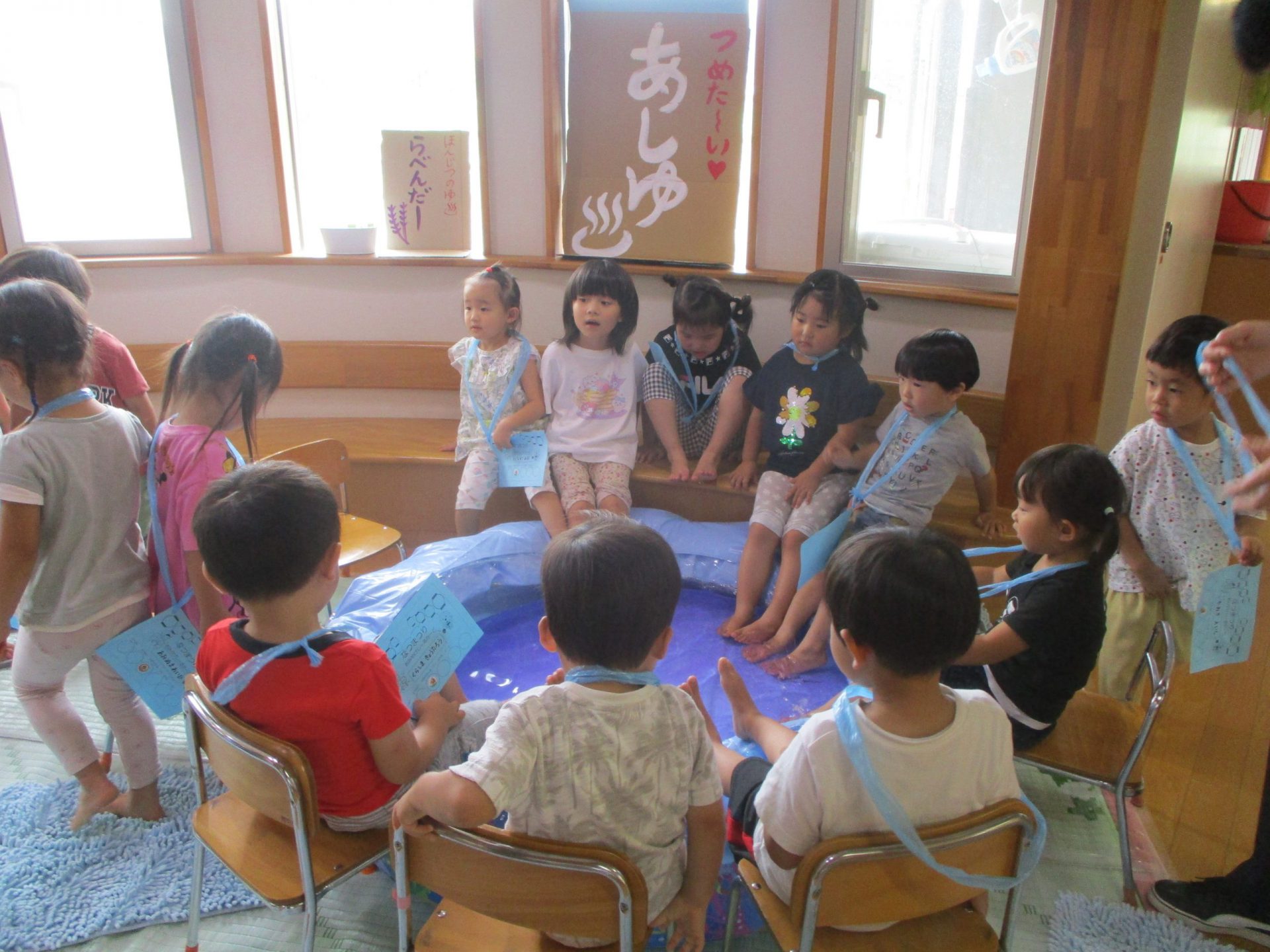 ヨーヨー釣りとつめた〜い!?足湯のコーナーです。『ほんじつのゆ“らべんだー”』