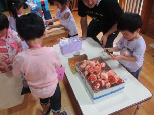 ・年長児だけで当番をするのではなく、全員が当番をする機会を作ったことで、異年齢でのやり取りをたくさんすることができました。今後もたくさんの友達と関わることができるようにしていきたいです。