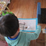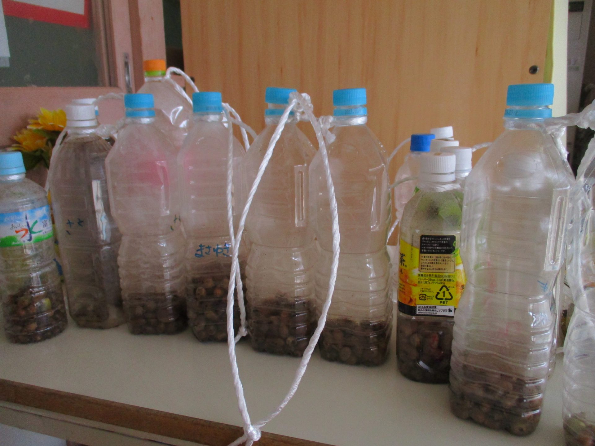 先日の遠足でさくらんぼさんがペットボトルで拾っていたのを思いだし、まねっこ。これならどのくらい拾ったか一目瞭然!このまま冷凍庫へ入れた虫がでないようにして乾かしてから製作に使います。