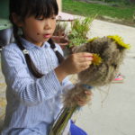 すすきでうさぎちゃん作り。「たんぽぽでかざってあげようっと。」
