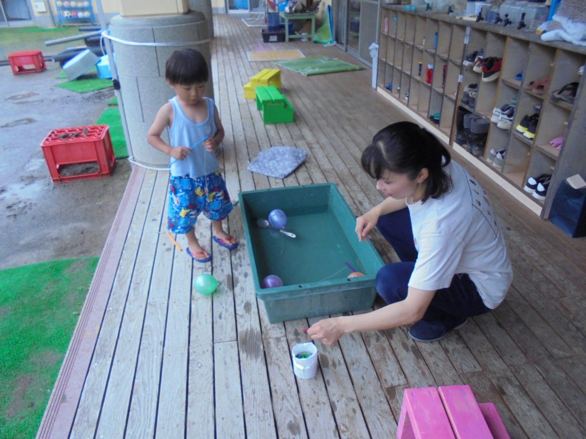 ぼんぼんやさんでは、くじ引きをしてあたりが出たら釣れます!