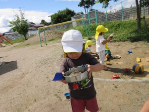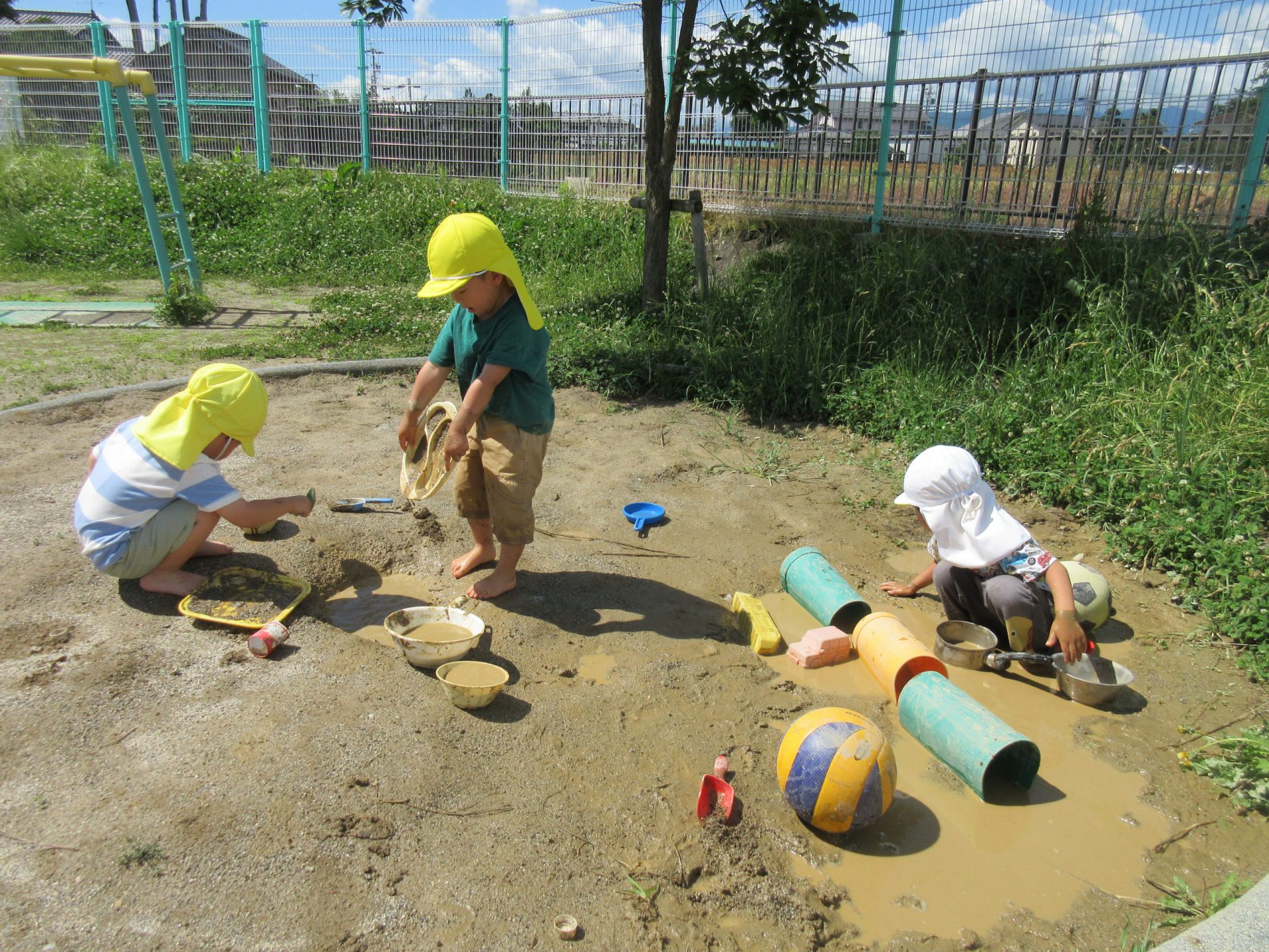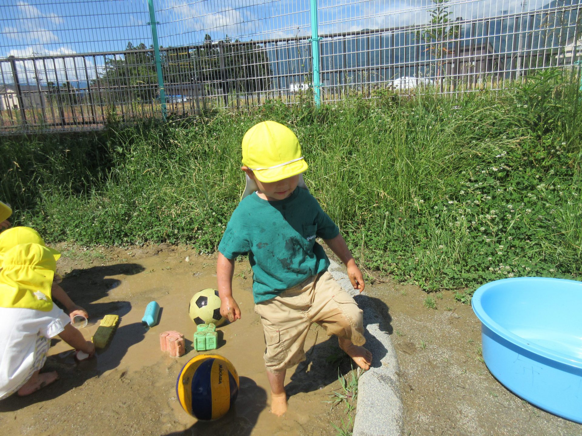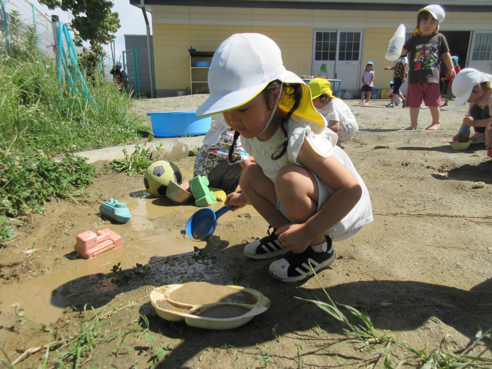 雨上がりにしかない水たまりなど、その時しか感じることができない体験を逃さず、保育に取り入れ、これからもいろいろな体験ができるようにしていきたいと思います。