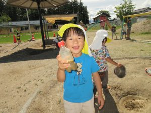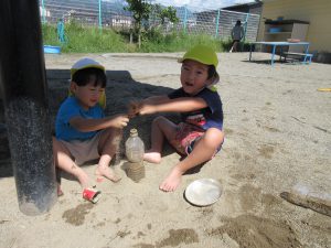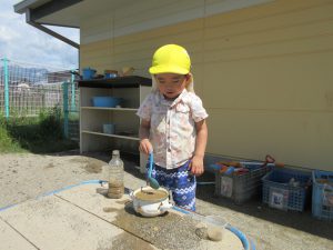 「水遊び行ってきまーす」と張り切って外に遊びに行きました