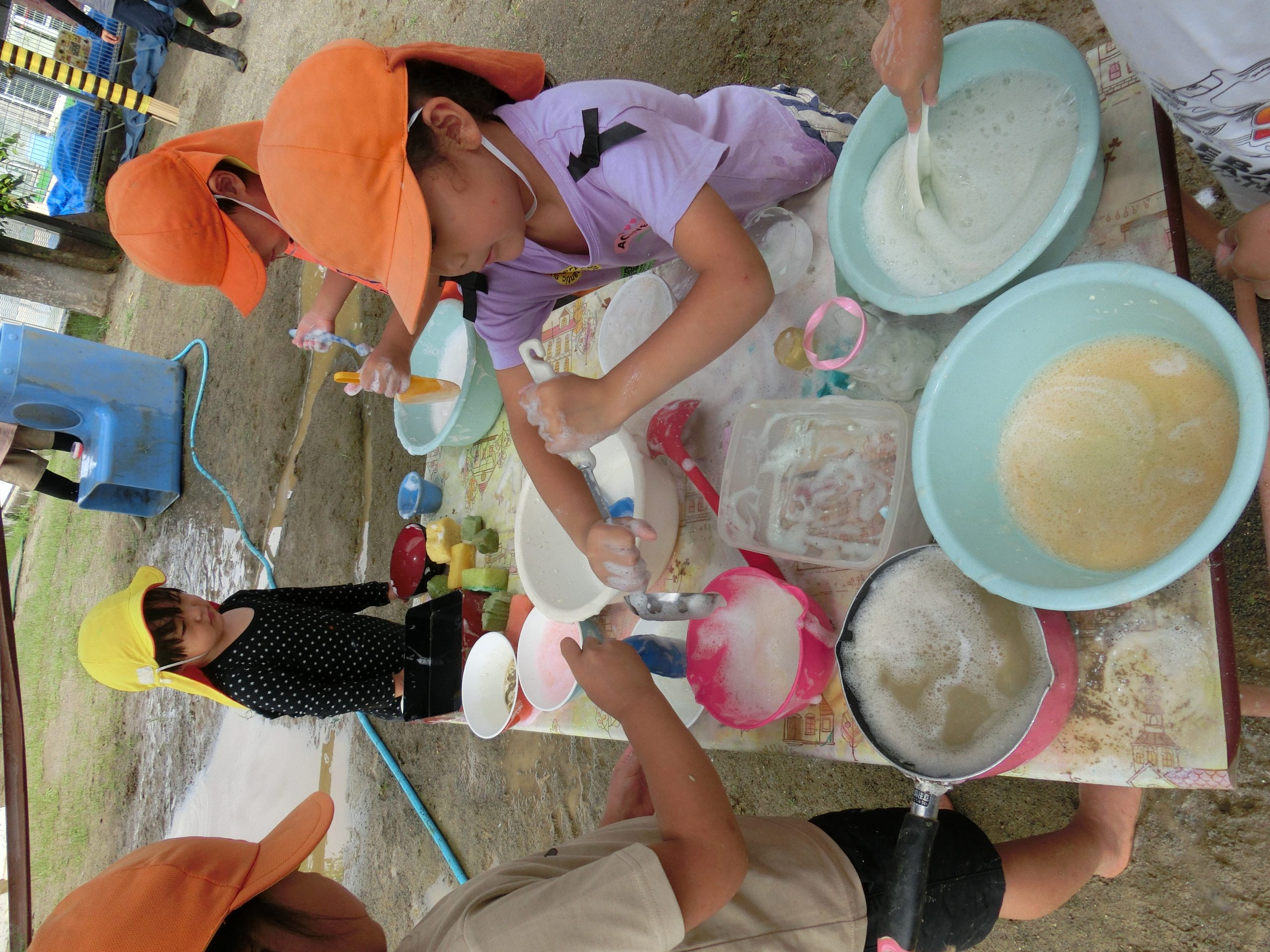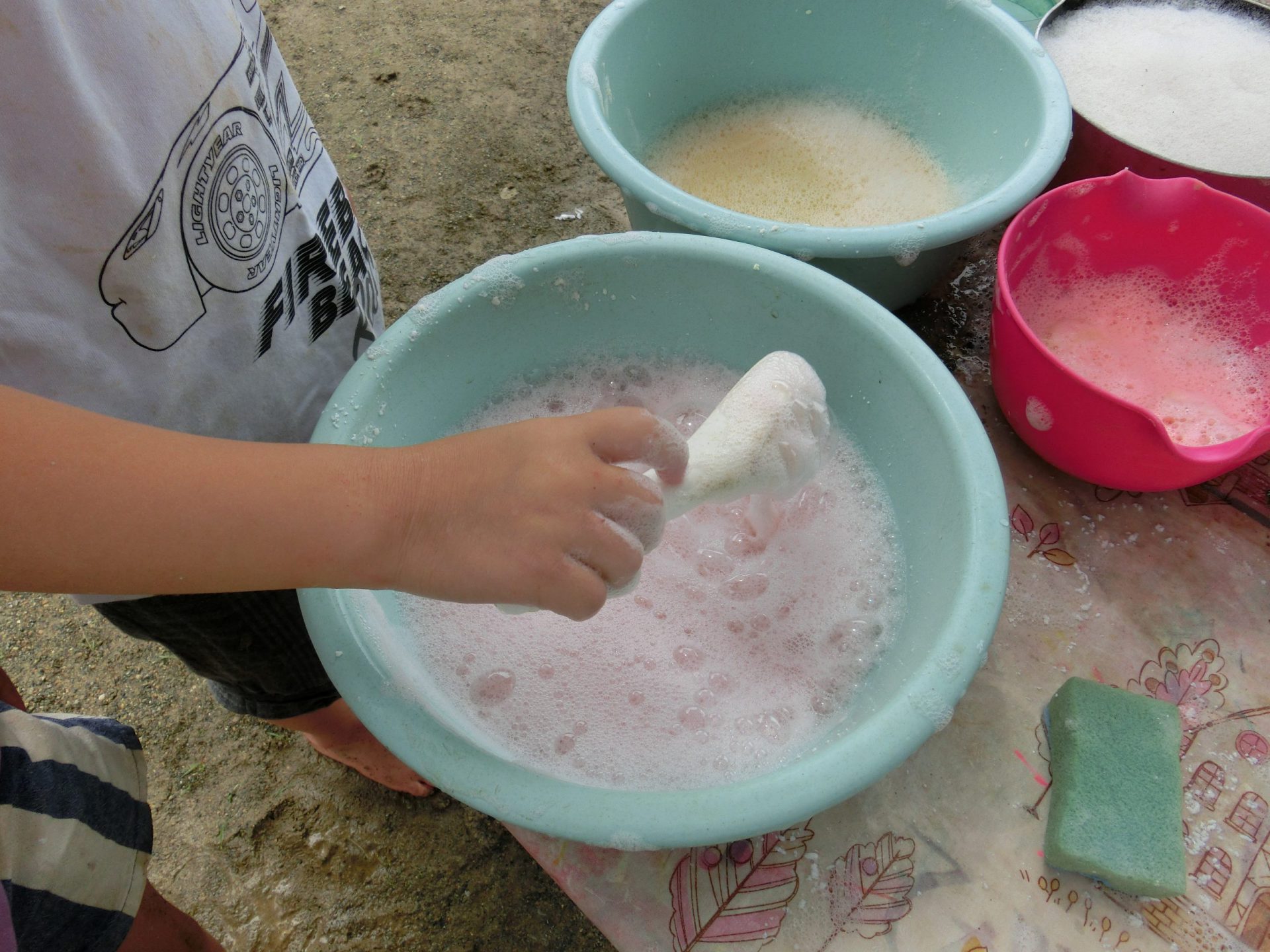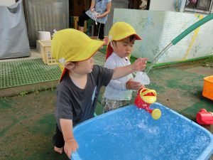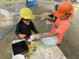 「この泡をあげるね~」「ありがとう」と子ども同士のやり取りがあちこちで見られました。