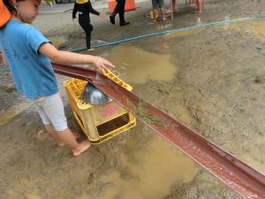 雨上がりで気温が上がらず、ダイナミックに遊ぶとはいきませんでしたが、いつもとは一味違う泥んこ遊びを楽しむ一日となりました。